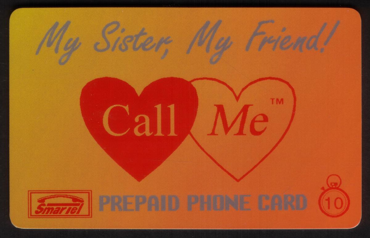 At the top part of the card, the branding “SmarTel Communication” is clearly visible, associating this collectible phone card with the telecommunications provider SmarTel. The words “Call Me” and “SPECIMEN” are present, marking it as part of a collectible series rather than a card intended for active use. The visual style and text placement work together to create a clear, straightforward tribute to the emotional and motivational power of family and sisterly relationships.