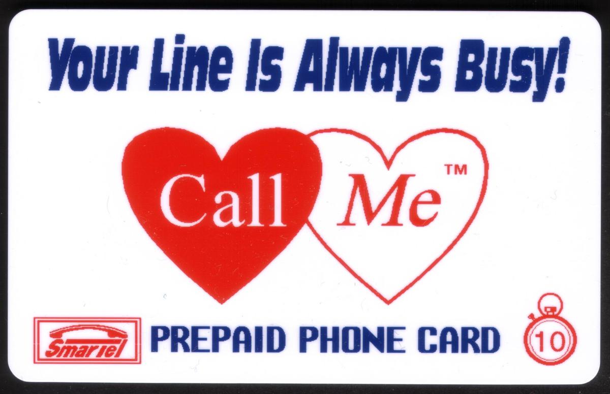 This is a complete set of 24 collectible prepaid phone cards from SmarTel, featuring the motif "Call Me" with two hearts—one solid red and the other outlined in red. Each card prominently displays the SmarTel logo along with the denomination icon showing the number "10." These prepaid phone cards contain various sentimental and motivational statements, making them suitable for diverse emotional expressions such as love, friendship, family appreciation, and heartfelt sentiments.