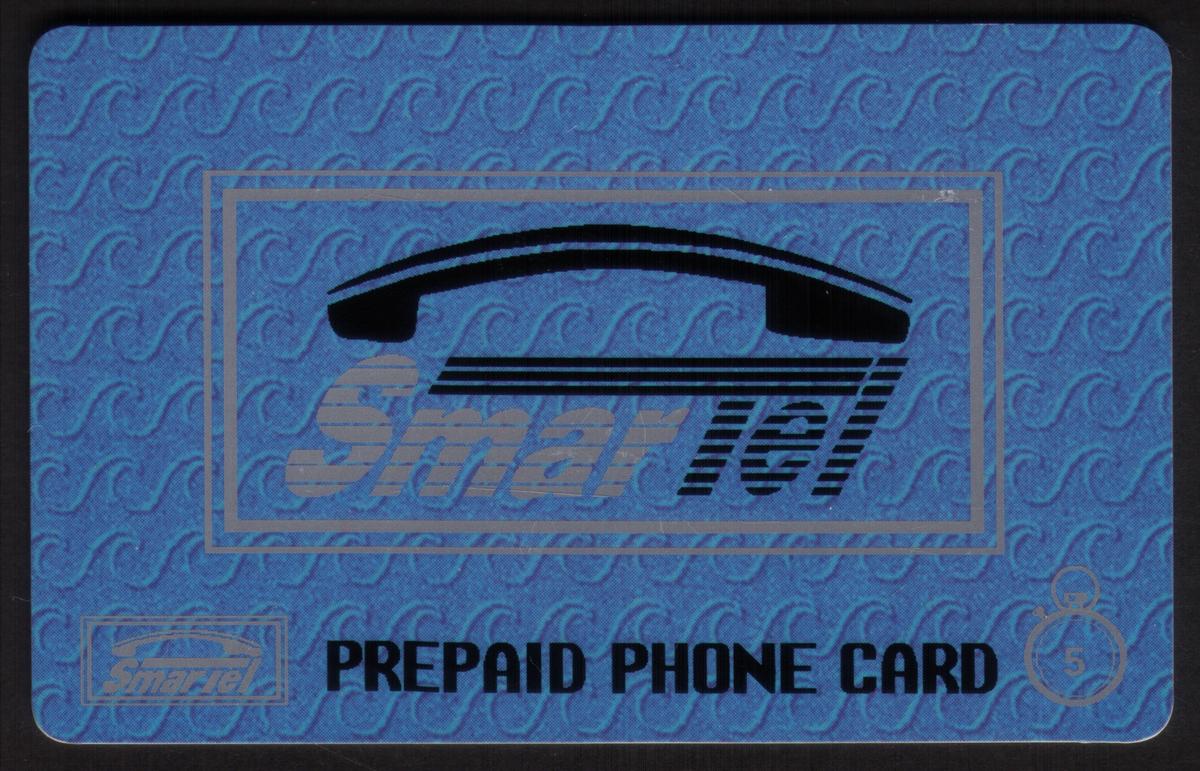 The overall layout is simple and corporate, emphasizing the promotional and business nature of the card. No images or additional graphics other than the text elements are present. The card showcases logos and trademarks associated with SmarTel Communication and WorldCom, indicating its use in a promotional or corporate context.