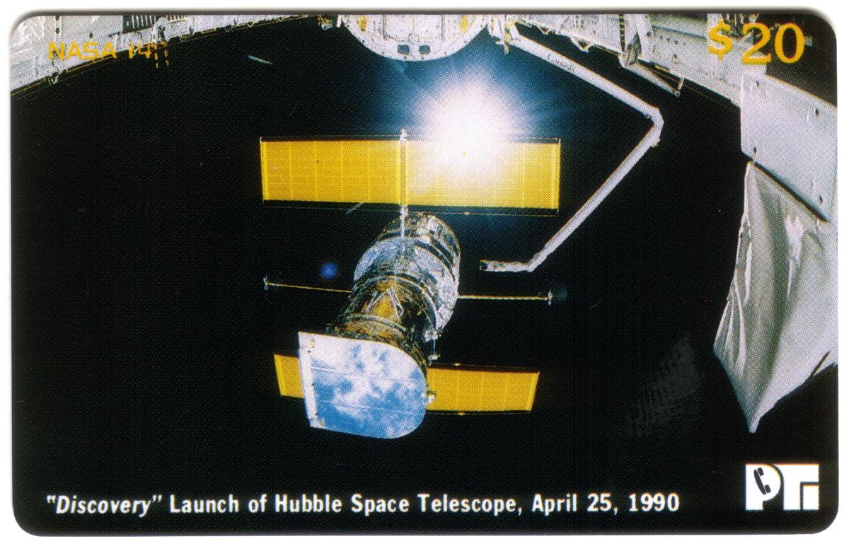 Space exploration commemorative card featuring the Hubble launch, NASA branding, $20 value, and detailed space imagery for collectors and enthusiasts. |