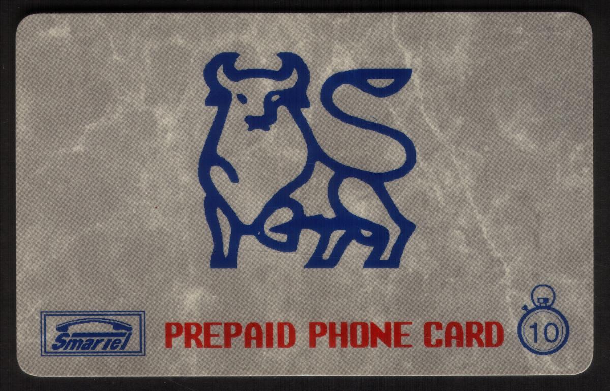 On the card’s lower portion, there is a financial amount of "10m" printed in bold, indicating a sum of ten million. Directly beneath this figure is the expiration date, marked as "3/1/96." The text “Merrill Lynch (Bull Logo)” appears clearly, linking the card to the well-known investment company Merrill Lynch. Toward the bottom right, the name “SmarTel Communication” is visible, identifying the communication company associated with the card.