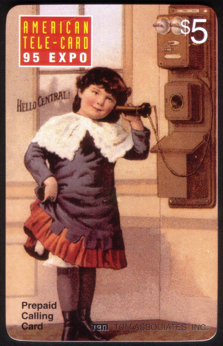The card is associated with the American Tele-Card Expo '95, as noted by the inscription "American Tele-Card Expo '95" on the front. It is produced by TCM Associates, Inc., whose name appears on the card. The overall design pays homage to vintage telephones and early telephone technology, aligning with themes of telecard events, expos, and shows.