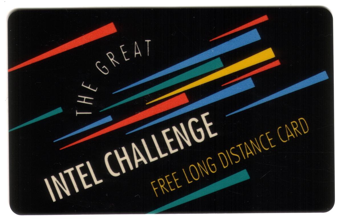 There are no photographic images, people, or characters depicted on this card. The visual focus remains strictly on the design elements and typography related to promotion and corporate identity. The card’s style and content reflect a promotional advertisement emphasizing a corporate or business context associated with SmarTel Communication and the Great INTEL Challenge branding.