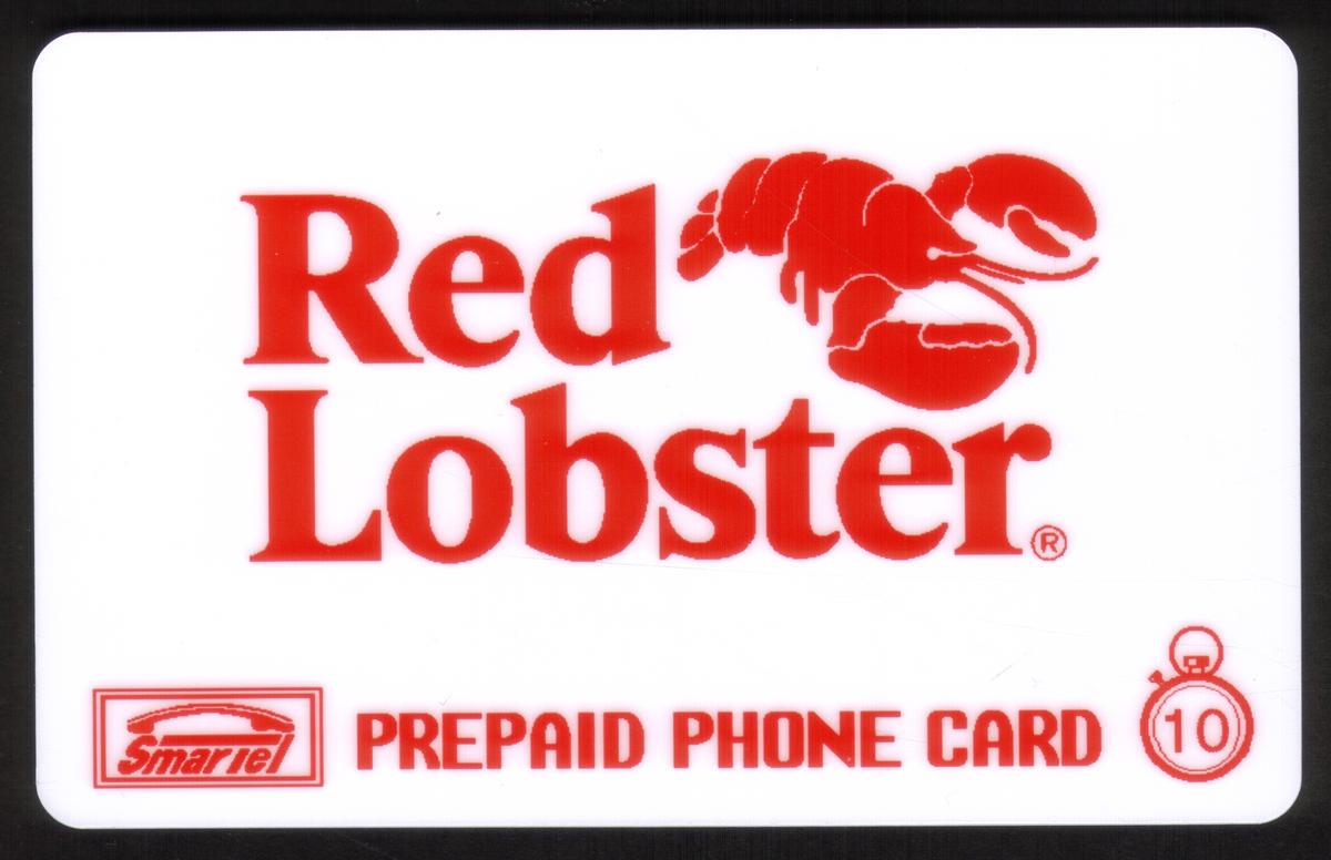Overall, this SmarTel prepaid phone card is a collectible piece tied to the Red Lobster restaurant chain, featuring a simple yet striking design that emphasizes the company's logo and its use as a 10-unit prepaid calling card.