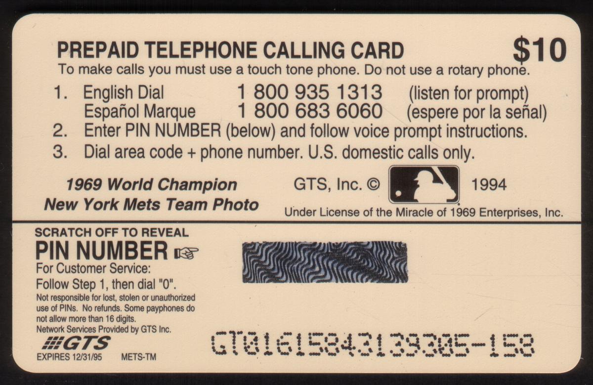 This item is a collectible phone card issued by Global Tel. Solutions. It has a $10 value and highlights the legendary 1969 New York Miracle Mets, who won the World Series against expectations, making this card significant for baseball memorabilia collectors and fans of the MLB and Mets history.