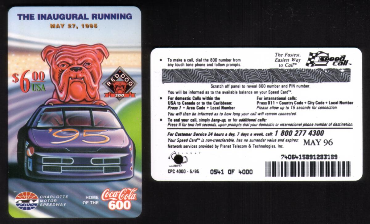 Keywords: Sports: Auto Racing, automotive, autos, automobiles, cars, trademarks, brand names, COKE logos, Coca Cola logos, charlotte motor speedway, Charlotte NC, North Carolina, dogs, animals, Red Dog, speedcall, coca-cola 600, planet telecom, Mercury Mkg SpeedCall