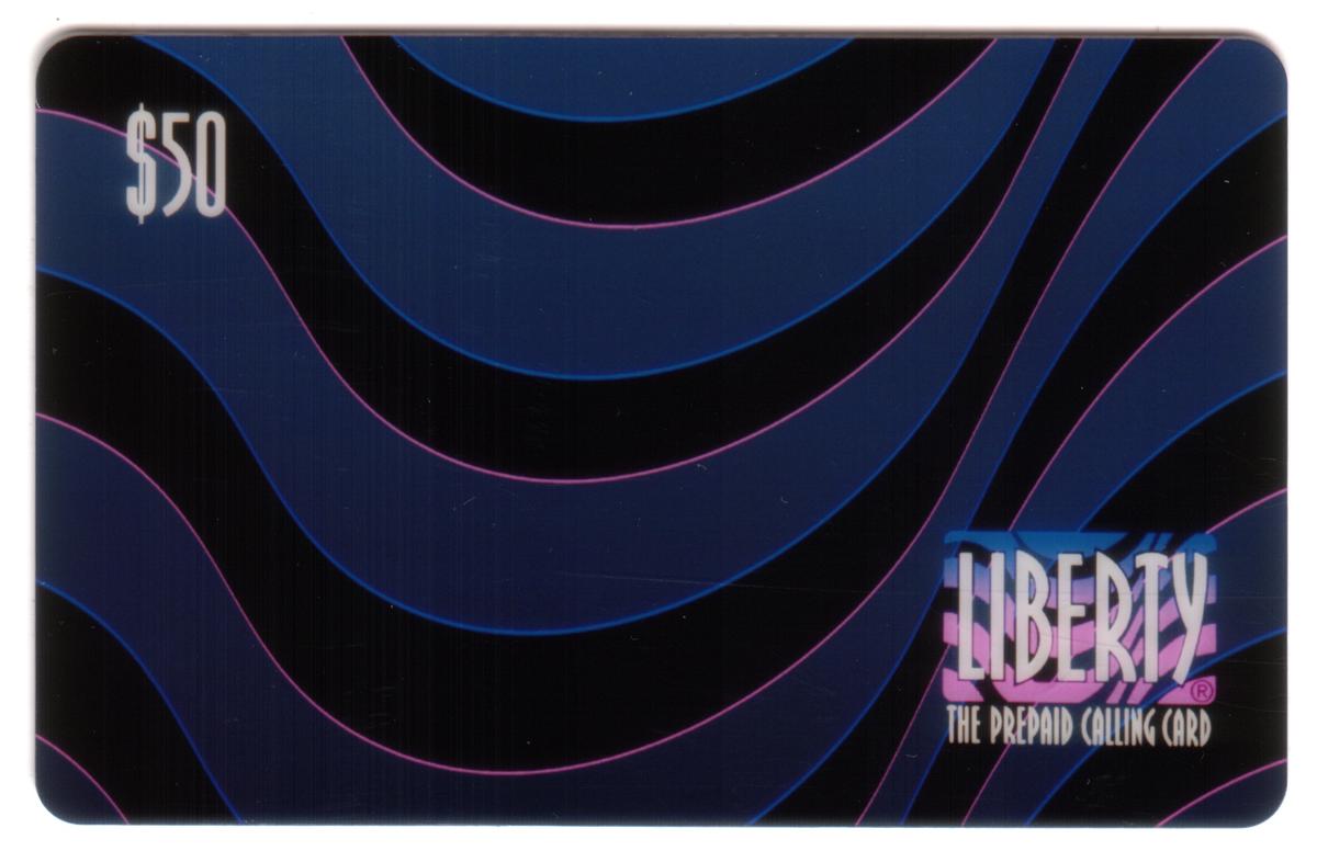This item is a collectible phone card identifiable by the specific text and design elements, combining thematic imagery with clear branding and denomination. The blue wave motif and lettering make it visually striking, suitable for collectors interested in phone cards featuring artistic wave designs and the theme of liberty.