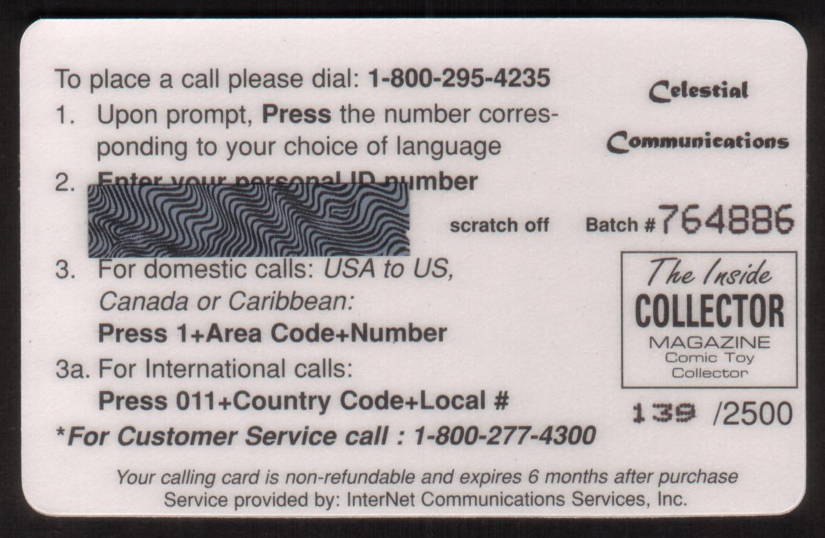 Since we have the world's largest inventory of USA phonecards for collectors, you will not necessarily receive the identical serial/batch/PIN number that we have scanned/pictured.