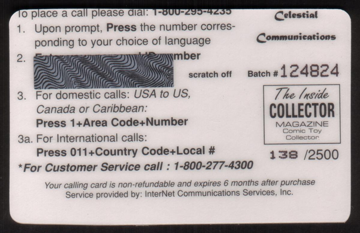 Since we have the world's largest inventory of USA phonecards for collectors, you will not necessarily receive the identical serial/batch/PIN number that we have scanned/pictured.