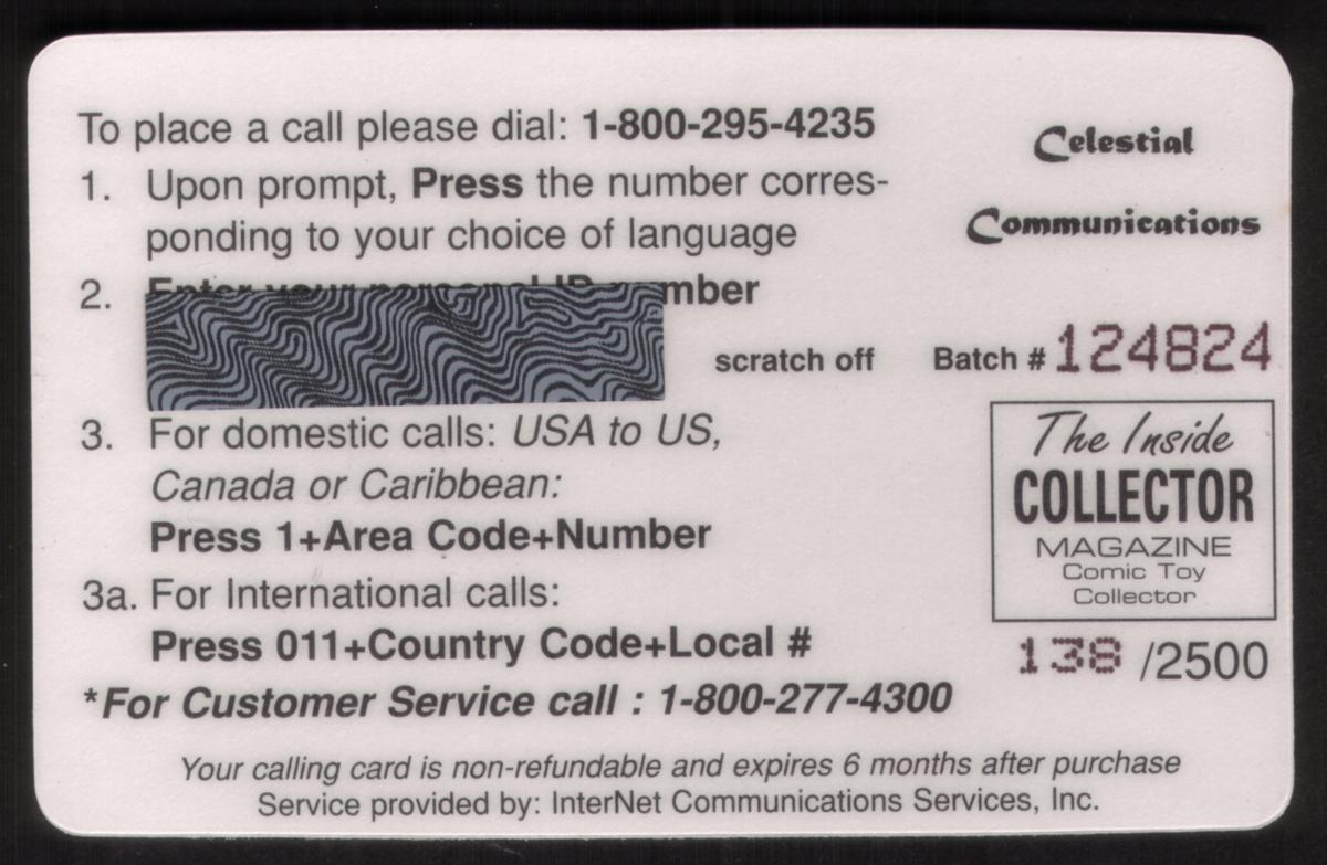 Since we have the world's largest inventory of USA phonecards for collectors, you will not necessarily receive the identical serial/batch/PIN number that we have scanned/pictured.