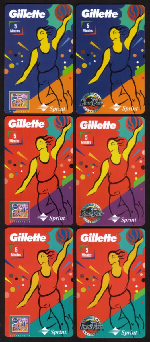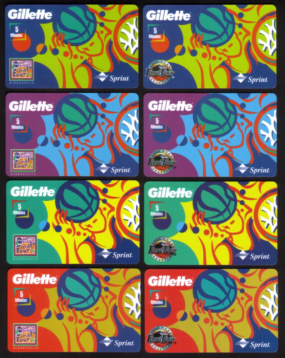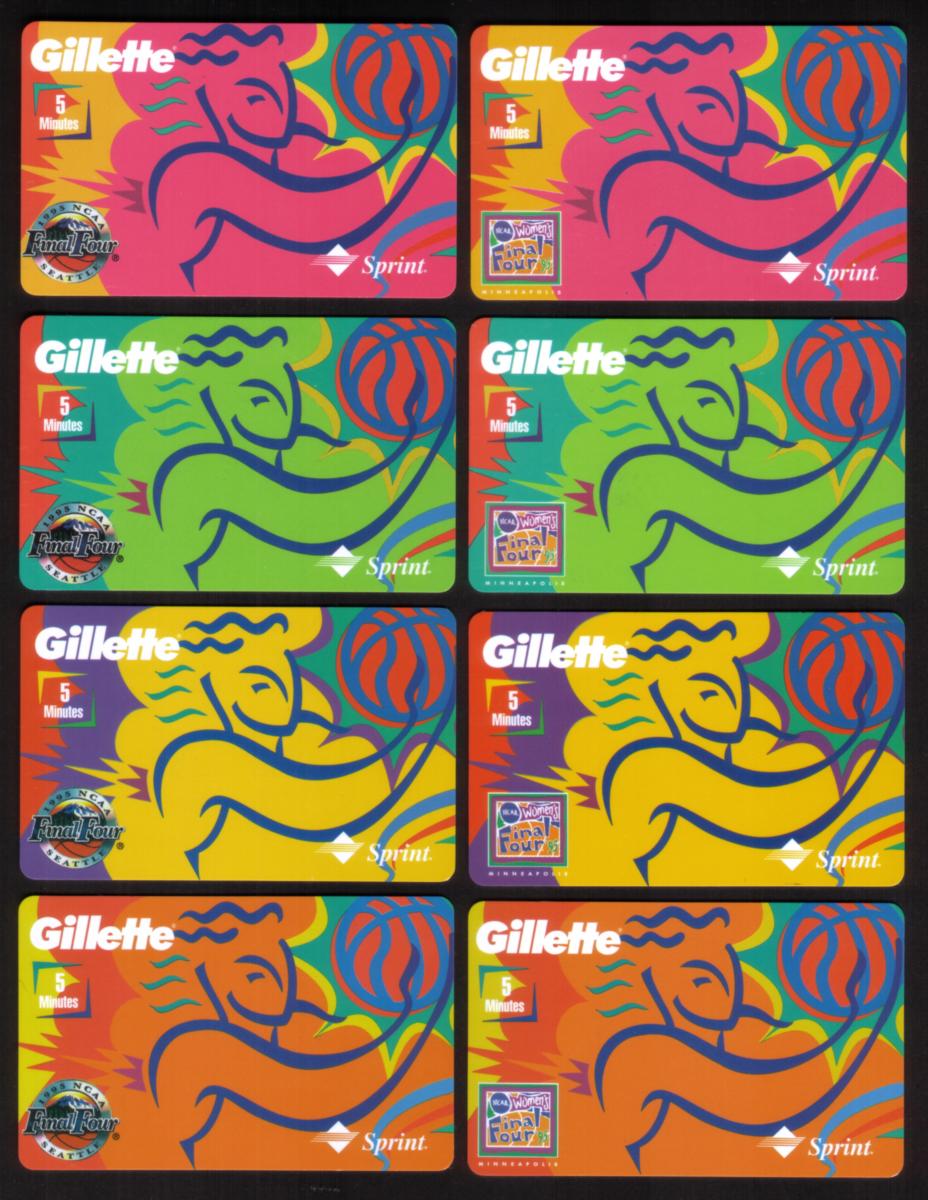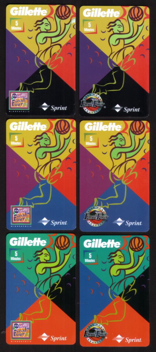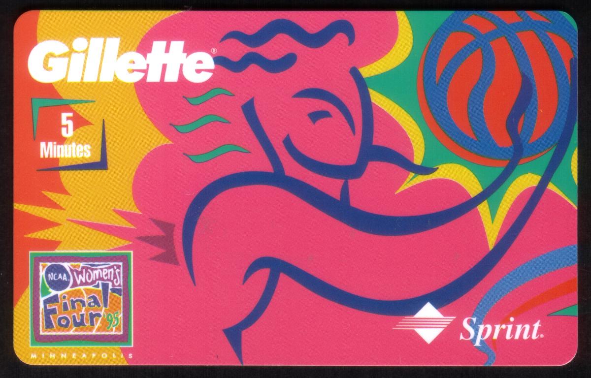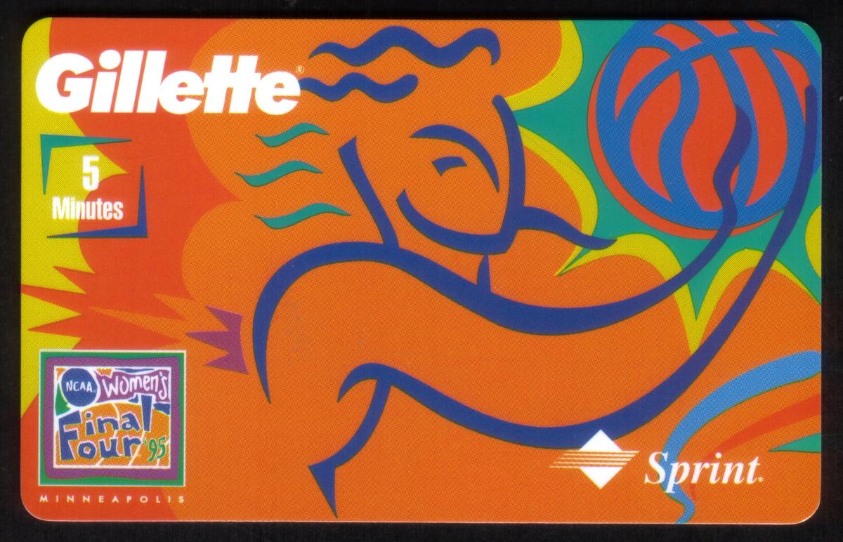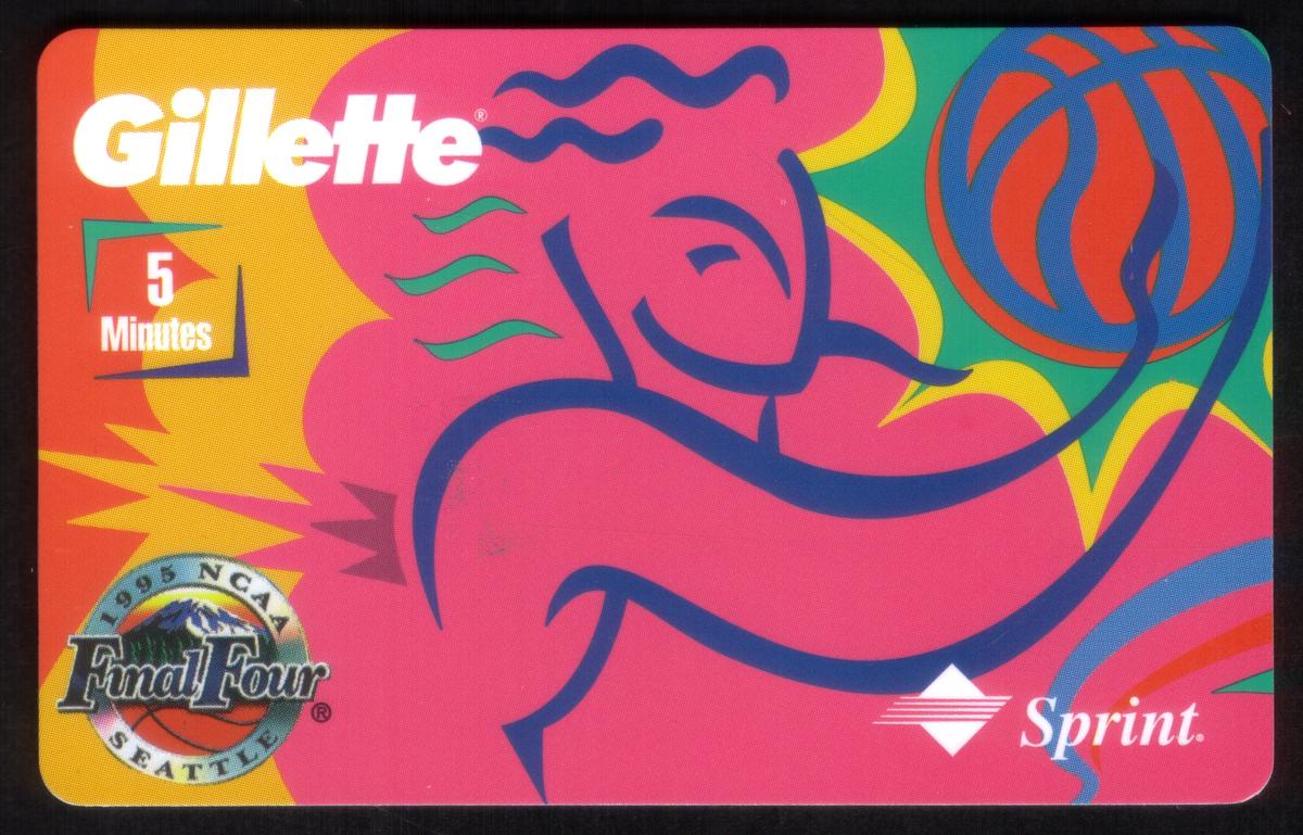 Overall, the card celebrates NCAA basketball through its use of official logos, basketballs, and associated branding from Gillette and Sprint, reflecting a promotional collectible from the mid-1990s focused on college basketball.
