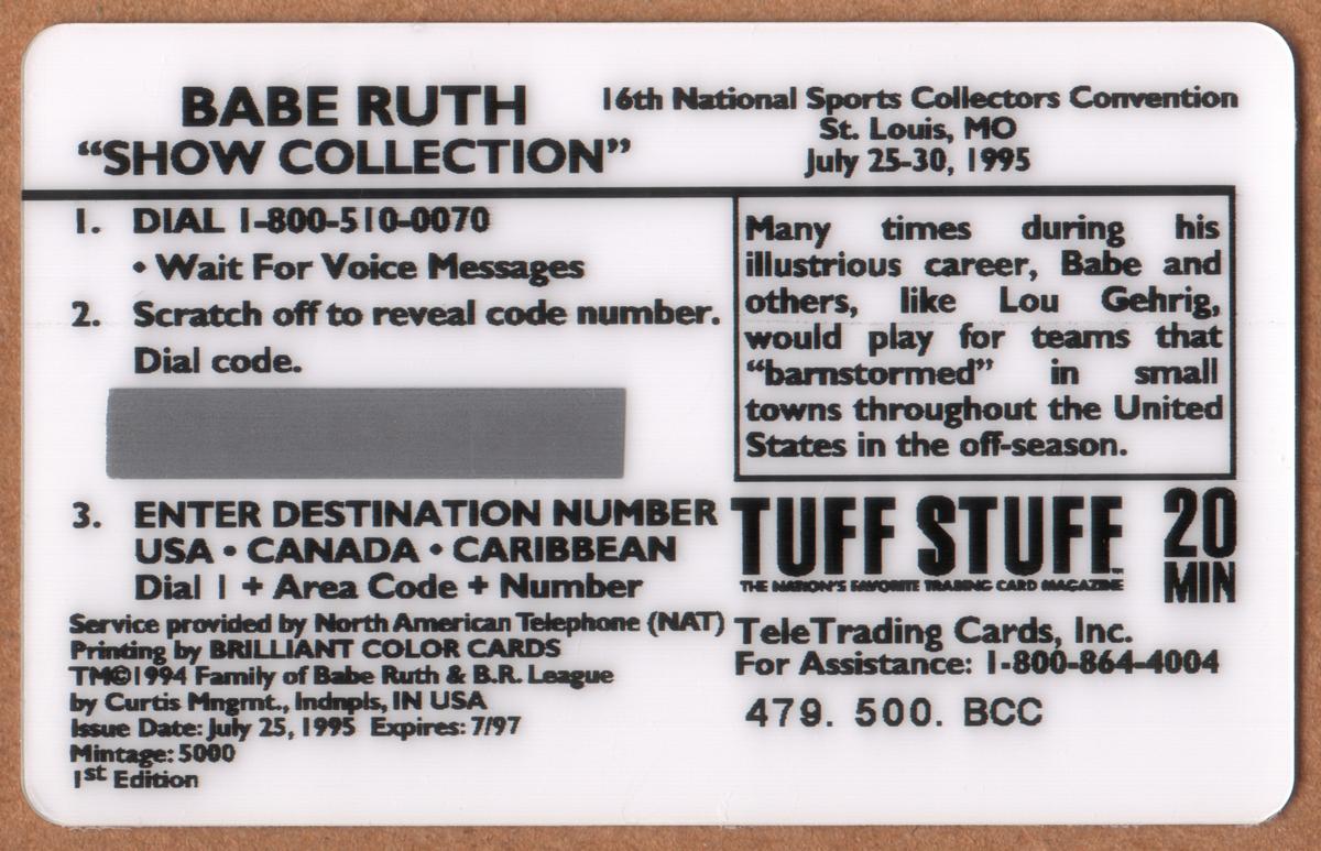 Each card has the inscription "Babe Ruth 'Show Collection'" in orange text at the bottom. The top right corner includes the "20 MIN TeleTrading Card" marking in white text. These cards highlight Babe Ruth’s enduring status as an iconic baseball legend and are part of a collectible series celebrating famous sports celebrities and baseball history.