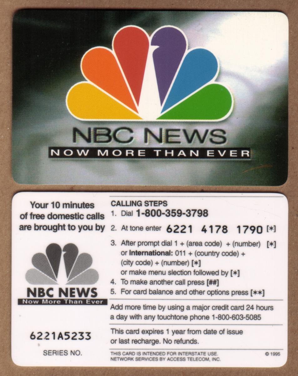 This card was produced as a promotional item linked to NBC News, marked by the phrase "NOW MORE THAN EVER," highlighting a motivational or campaign theme. The card is associated with Access Telecom, Inc. and features no other graphics or additional text on the front.