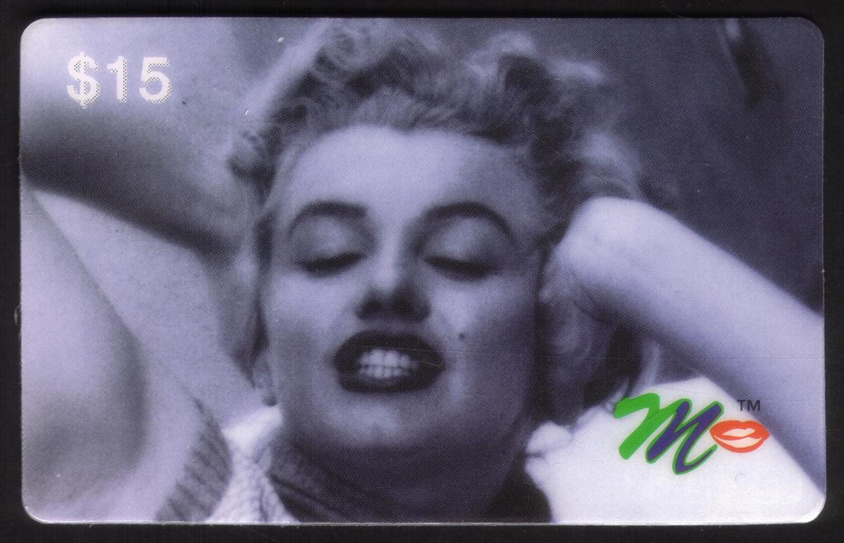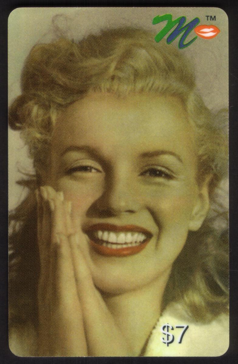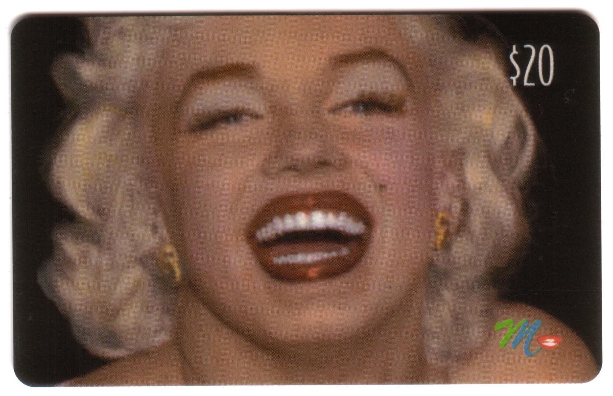 This complete collectors set of twenty Marilyn Monroe collectible phone cards showcases iconic images of the legendary Hollywood actress Norma Jeane, better known as Marilyn Monroe. Each card features a distinct photo or artistic rendering of Monroe in various poses, expressions, and settings, capturing the classic beauty and charisma that made her a global star. The cards prominently display the value amounts ranging from $3 to $20 in the corners, along with a colorful "M" logo with red lips on each card.