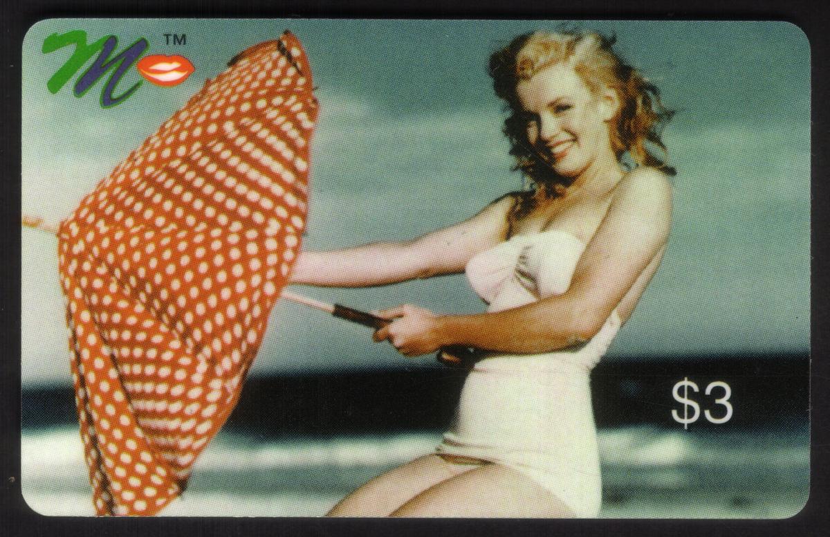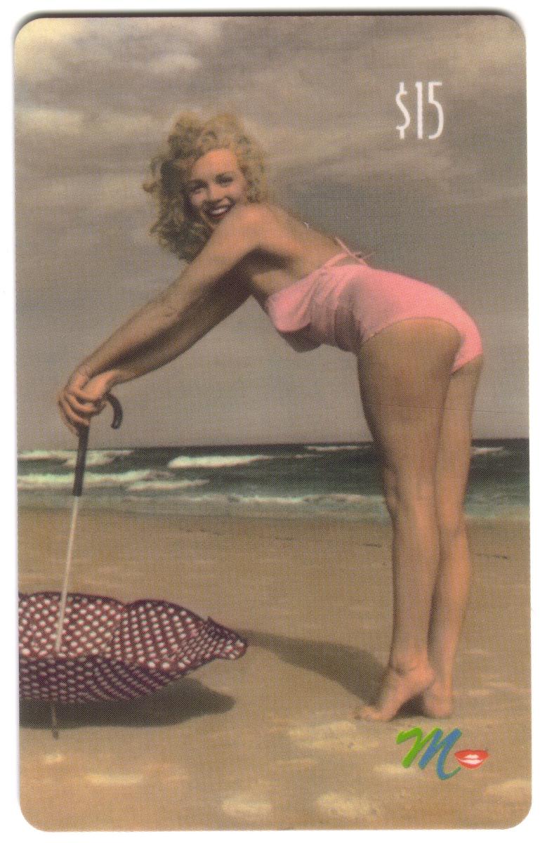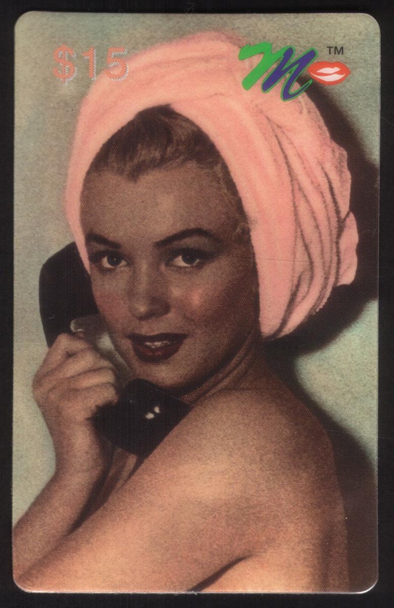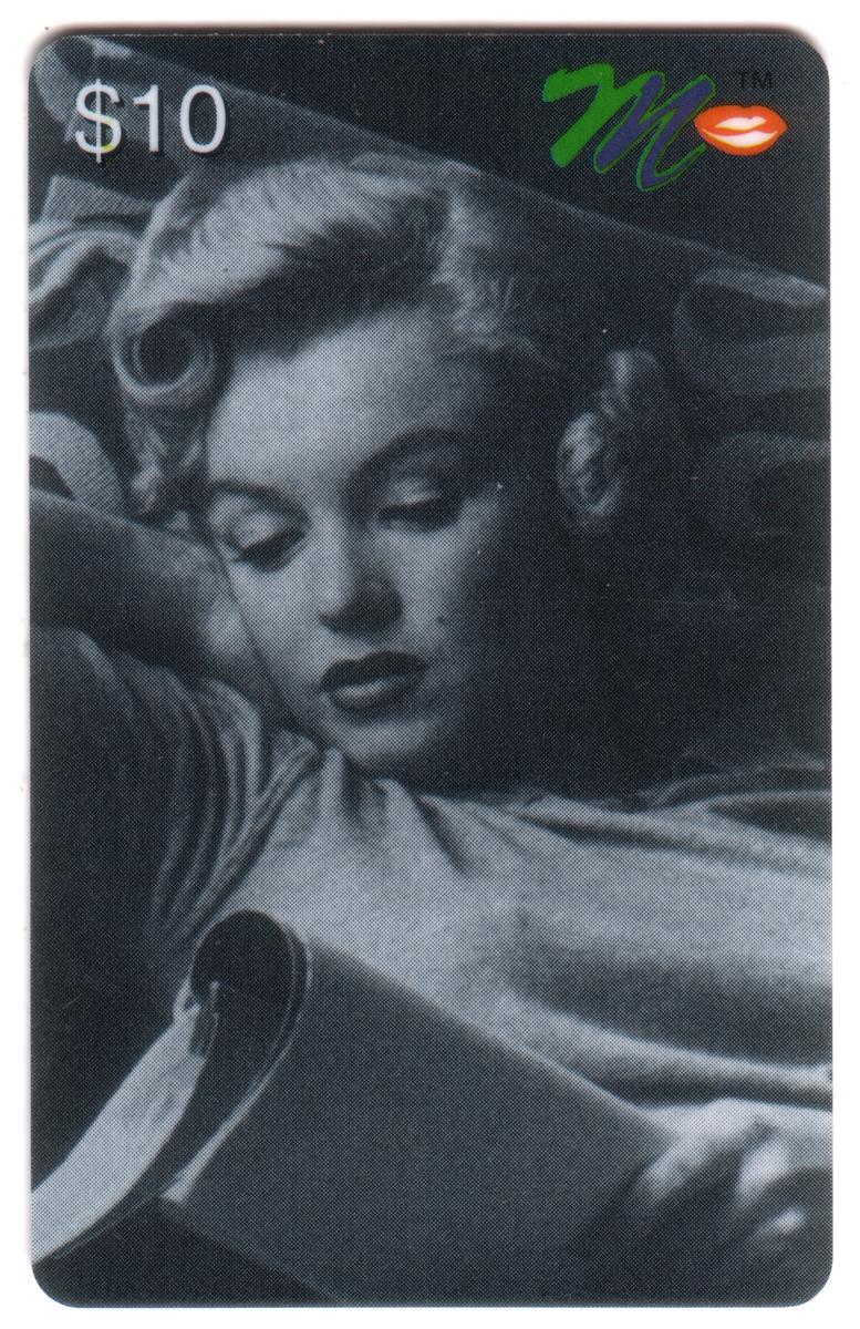 This complete collectors set of twenty Marilyn Monroe collectible phone cards showcases iconic images of the legendary Hollywood actress Norma Jeane, better known as Marilyn Monroe. Each card features a distinct photo or artistic rendering of Monroe in various poses, expressions, and settings, capturing the classic beauty and charisma that made her a global star. The cards prominently display the value amounts ranging from $3 to $20 in the corners, along with a colorful "M" logo with red lips on each card.