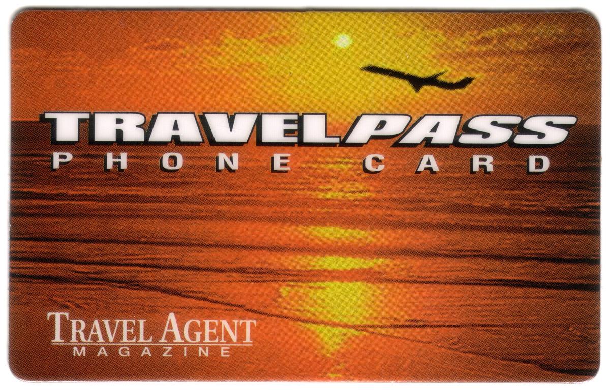 Prominently displayed on the card is the branding for Cable & Wireless (CWI), positioned in the upper right corner. The card’s monetary value is clearly marked as "$3". The text "TravelPass Phone Card" appears along the bottom edge, accompanied by the title "Travel Agent Magazine" just above it. The overall layout combines the elements of travel, aeronautics, and leisure to create an appealing collectible phone card suitable for users or collectors interested in these themes.