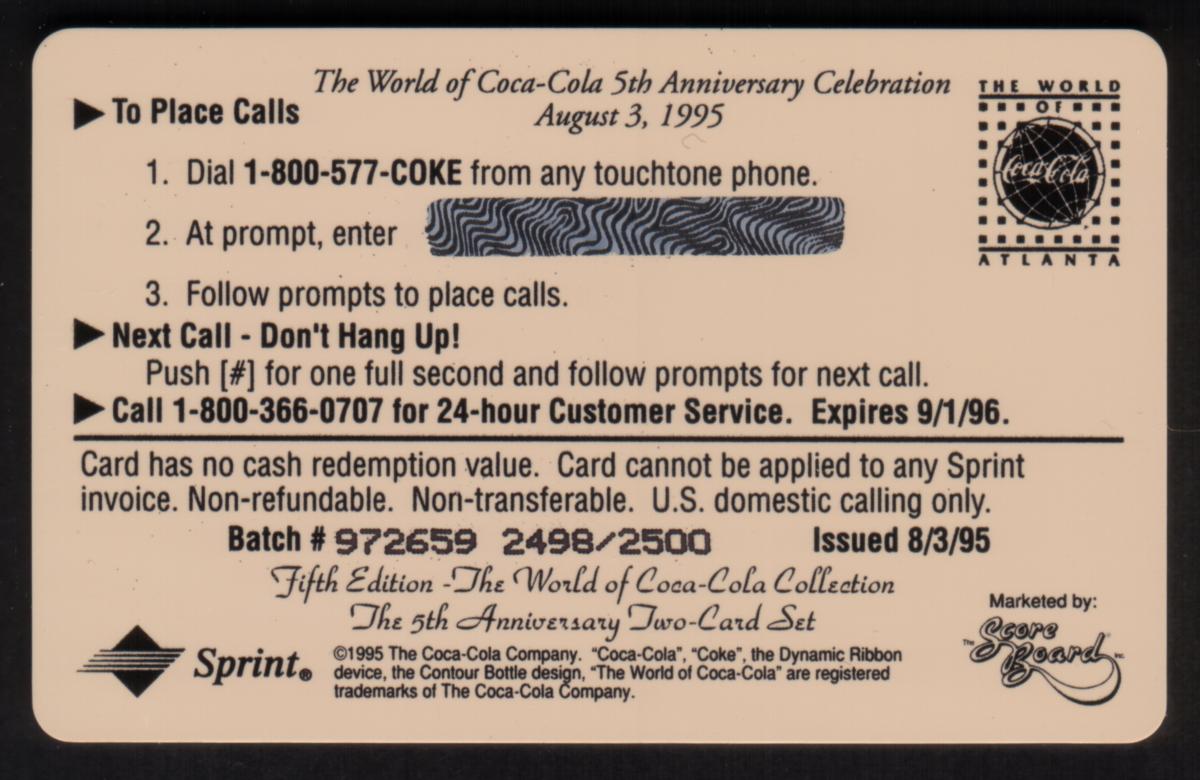 Both cards were issued by The Score Board Inc. and emphasize the global reach and celebration of Coca-Cola’s World of Coca-Cola attraction in Atlanta on its fifth anniversary. The vivid designs and iconic branding make these cards collectible items that mark a significant milestone for the attraction.