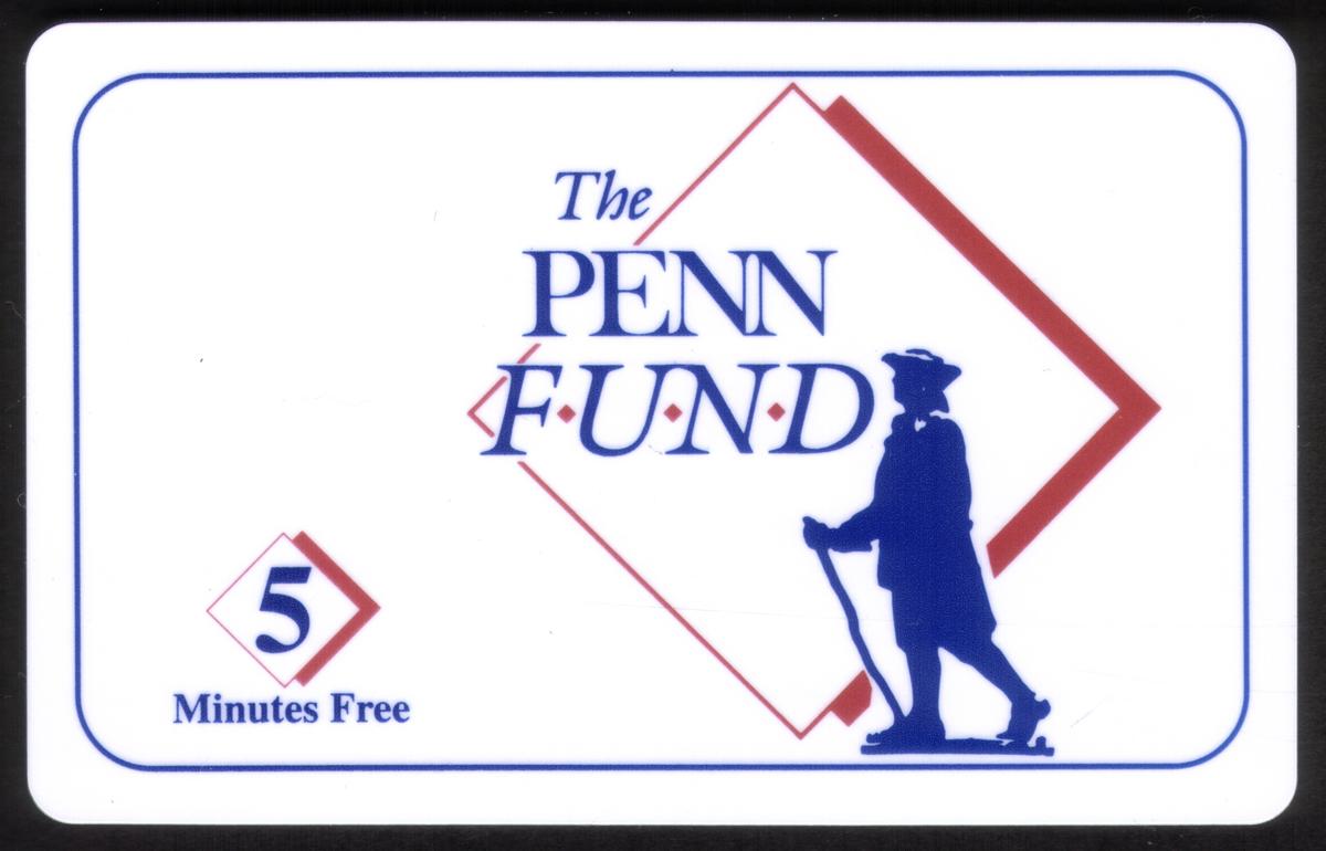 This collectible card features corporate branding prominently, showcasing the Colonial Penn 5M logo associated with "The Penn Fund." The design centers on the theme of business and communications design, presenting a clean, professional layout typical of corporate materials. The card includes text elements that clearly identify Colonial Penn and The Penn Fund, emphasizing their corporate trademarks.
