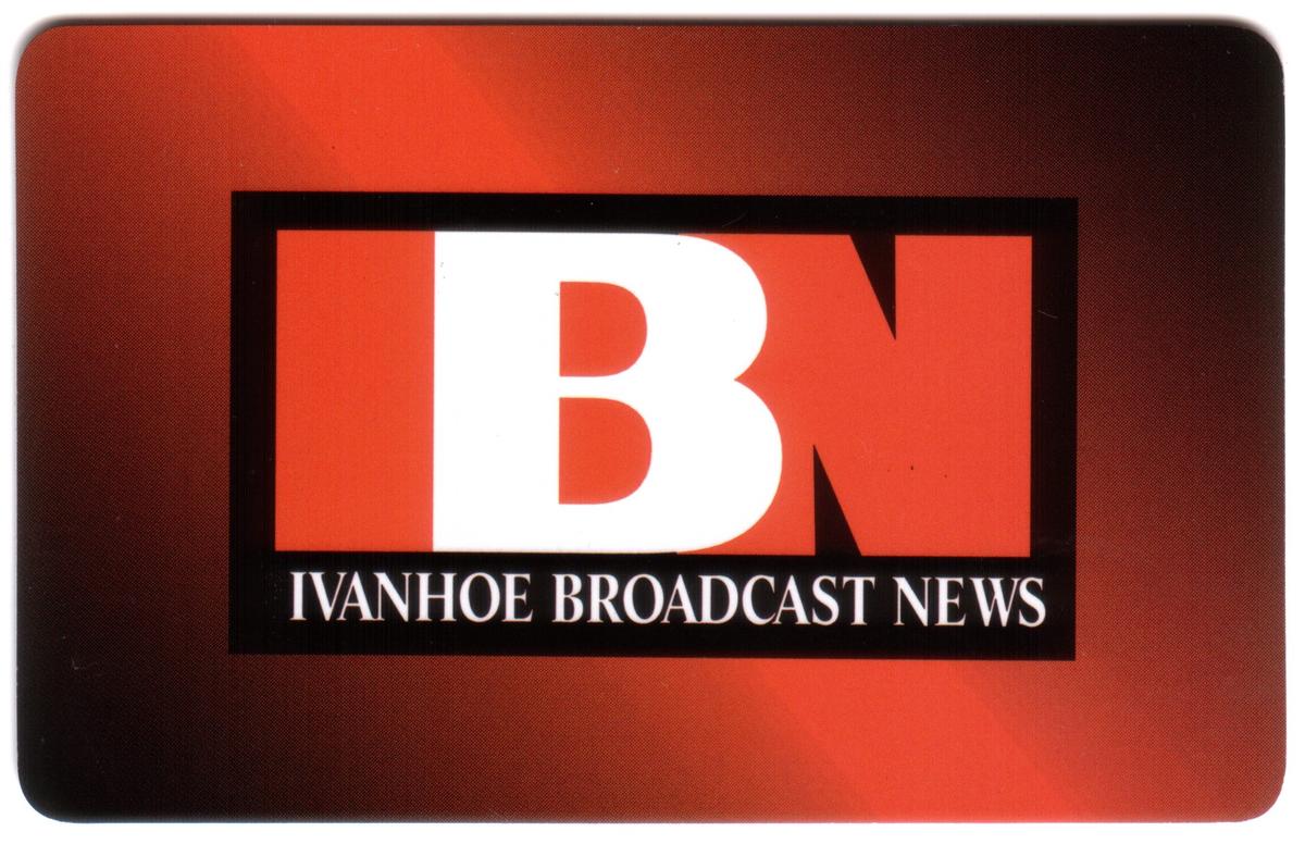 This collectible promotional phone card features the 10m IBN Ivanhoe Broadcast News Promo for Access Telecom, Inc. The design prominently displays the IBN Ivanhoe logo, emphasizing the connection to broadcast news media. The background includes visual elements that tie into news production, including subtle graphical accents and a professional layout, reflecting the theme of media and communication.