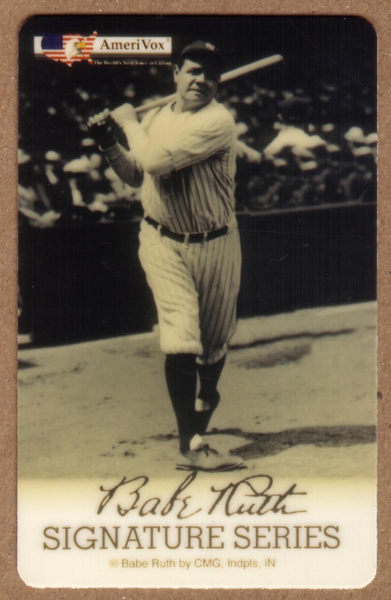 At the center, the card displays the name "George Herman Babe Ruth" along with the designation "Baseball Signature Series," emphasizing the collectible nature of the item. The use of the terms "Bambino" and "Sultan of Swat" directly references Babe Ruth’s celebrated nicknames. The card is issued by AmeriVox, evident from the branding located in the lower right corner, linking this collectible phone card to that issuer.