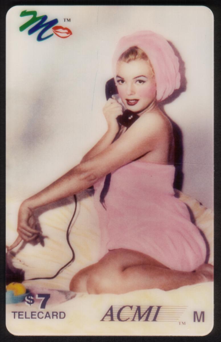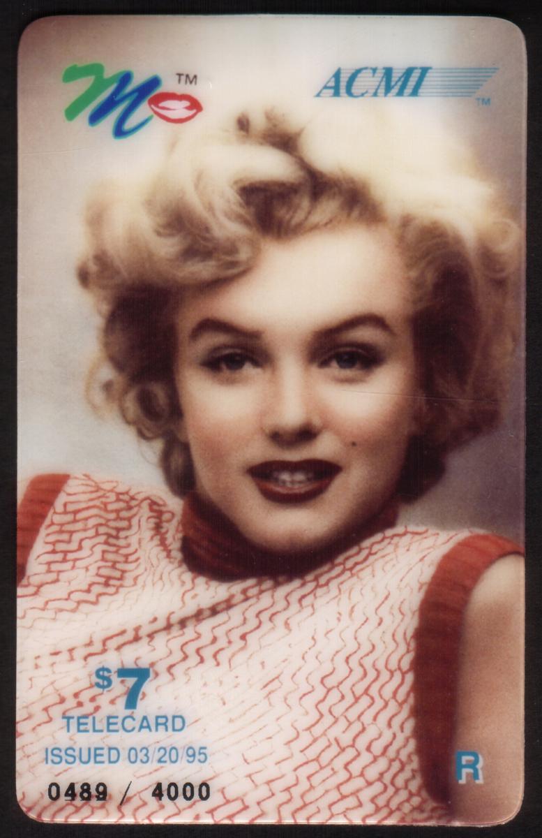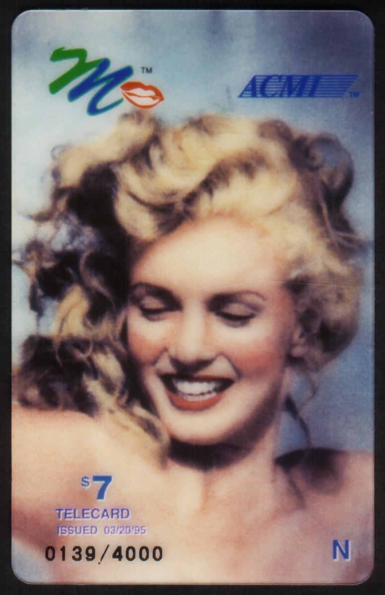 This is a complete set of seven collectible $7 telecards featuring iconic images of Marilyn Monroe, issued between September 1994 and March 1995. Each card presents a distinct photograph of Marilyn Monroe, the legendary Hollywood actress and star, showcasing various moments and poses that emphasize her glamorous and timeless appeal. The cards display the ACMI logo, denoting the series’ issuing entity, and all are marked with the "M" logo featuring a colorful stylized "m" with red lips.
