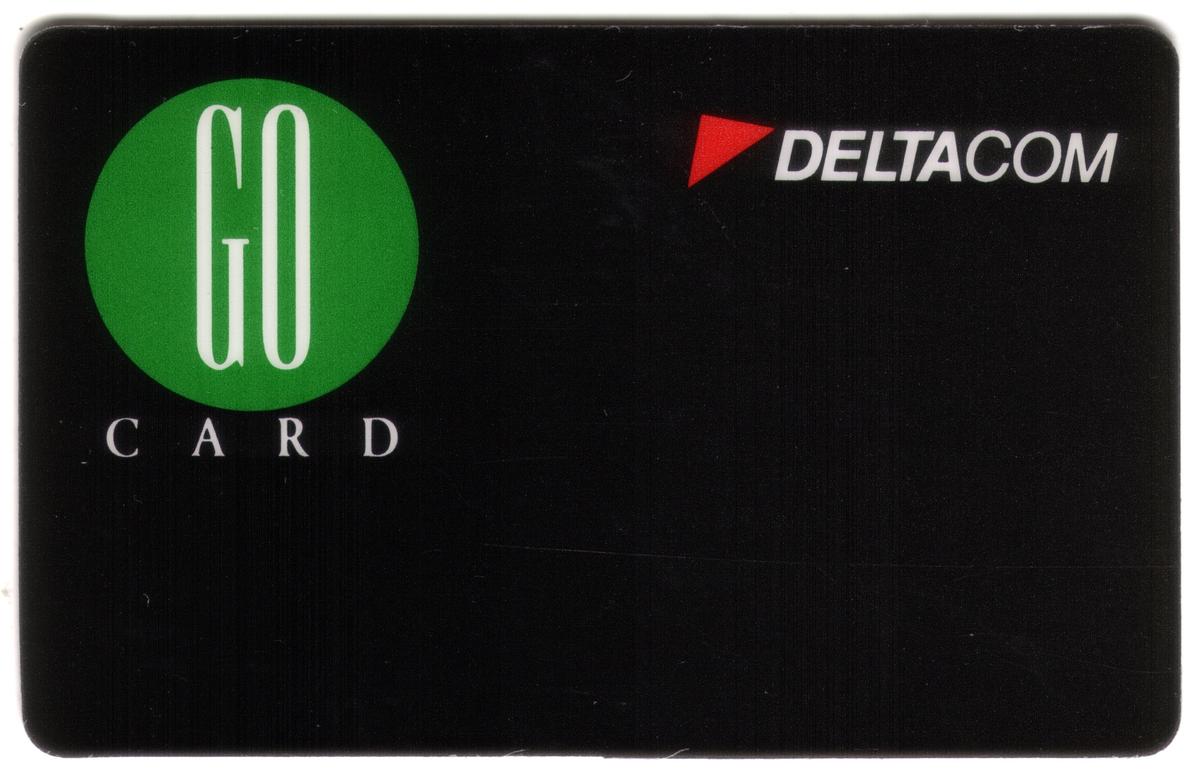 No other imagery, such as characters or scenic views, is present on the card. The design is focused solely on corporate branding and conveying the card’s telecommunication function through the DeltaCom and 'GO Card' logos and text.