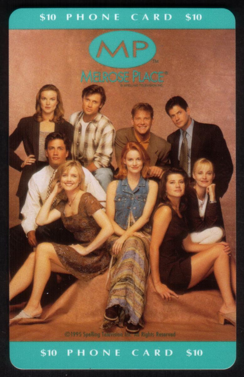 This phone card is a collectible item tied to entertainment, especially television shows and famous actors, celebrating the popular 1990s TV series Melrose Place. It is a prepaid $10 phone card intended for telecommunication use, featuring official imagery from the show.