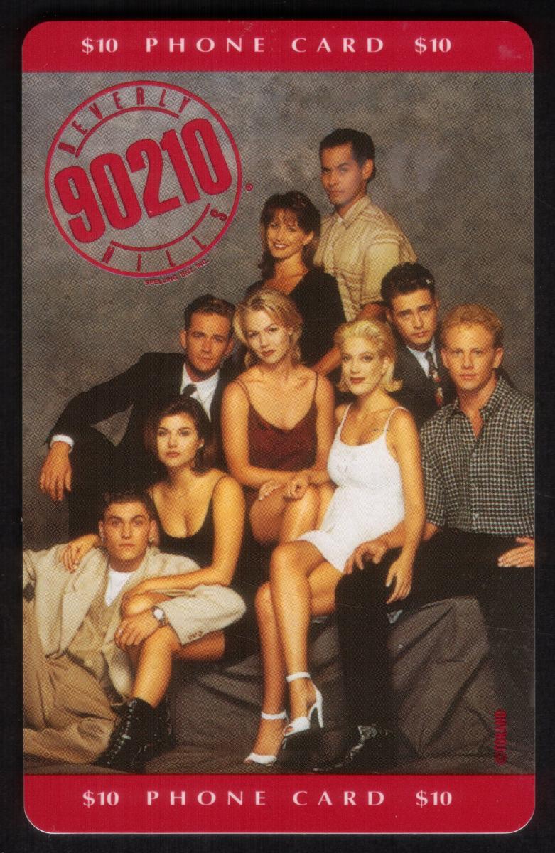 The card includes the title "$10 Beverly Hills, 90210 (Design of the 9 Major Actors)" along with the Frontier Communications logo, indicating it is a collectible phone card issued by Frontier Communications. The $10 denomination is clearly printed on the card. The overall design uses a simple, clean layout to highlight the cast and the show’s popular branding.
