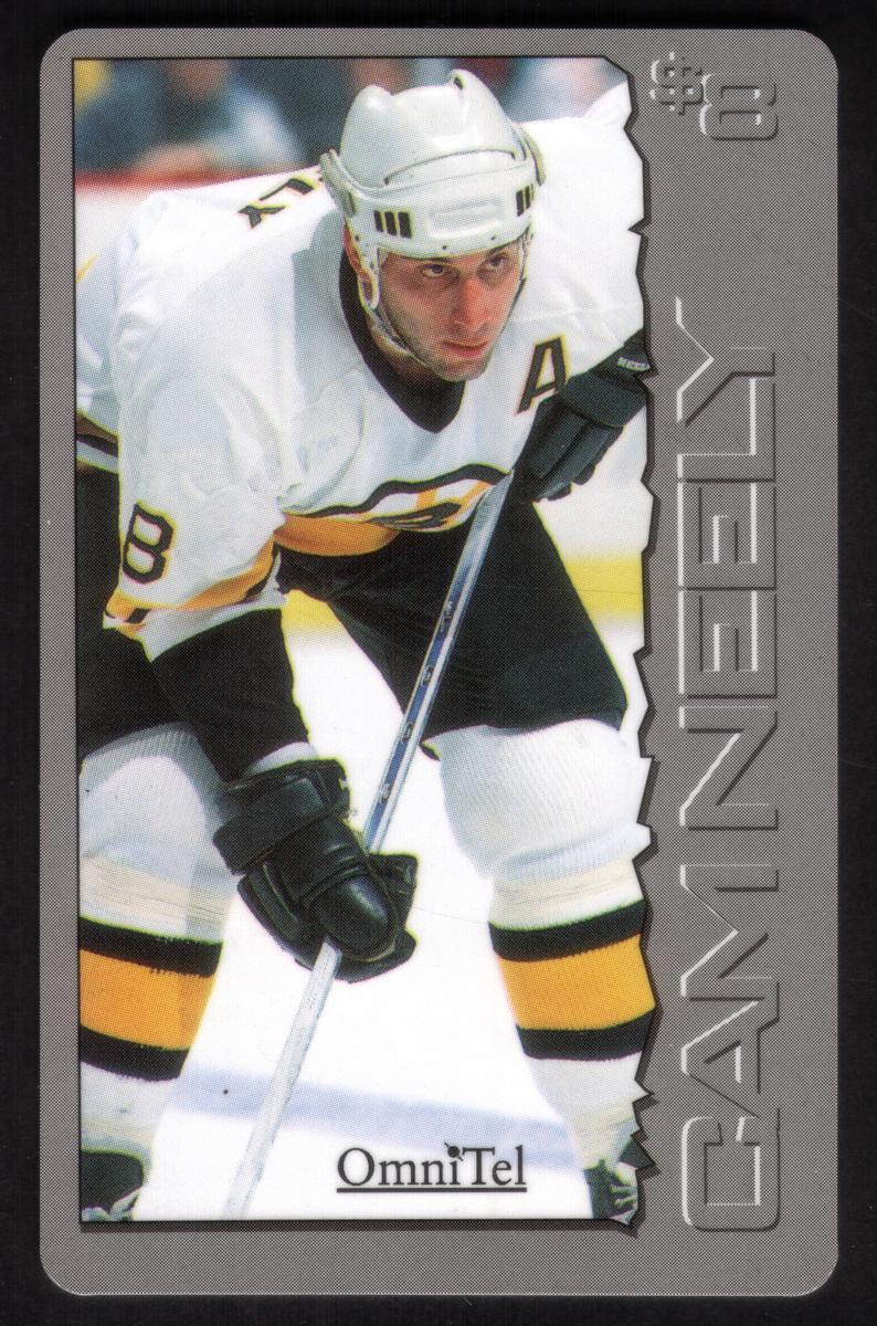 This collectible phone card combines sports imagery with telecommunications branding. It serves as a tribute to Cam Neely’s career in the NHL and functions as a phone card issued by OmniTel. The design captures the energy and recognition of professional hockey while maintaining clear identification of the card’s purpose and featured athlete.