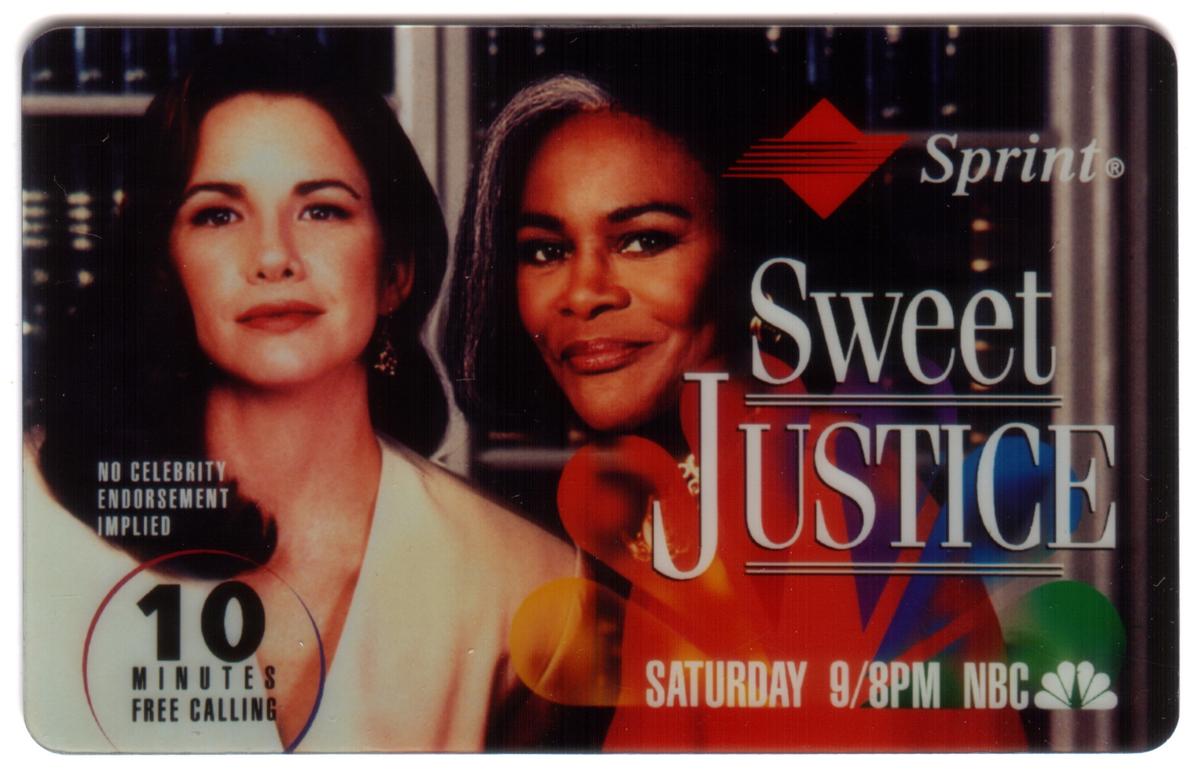 Overall, this phone card promotes the 1994 NBC Fall Lineup series "Sweet Justice," starring Melissa Gilbert and Cicely Tyson, distributed by Sprint with 10 free calling minutes available on the card.