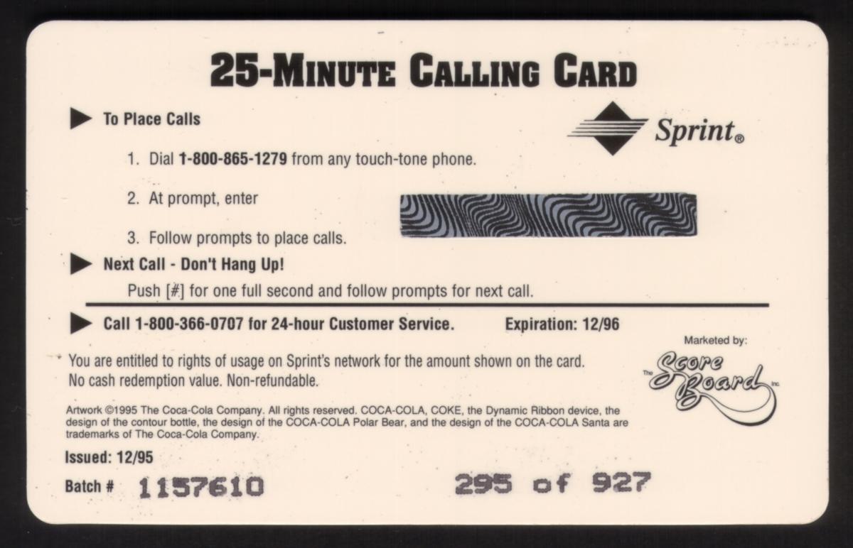 Since we have the world's largest inventory of USA phonecards for collectors, you will not necessarily receive the identical serial/batch/PIN number that we have scanned/pictured.