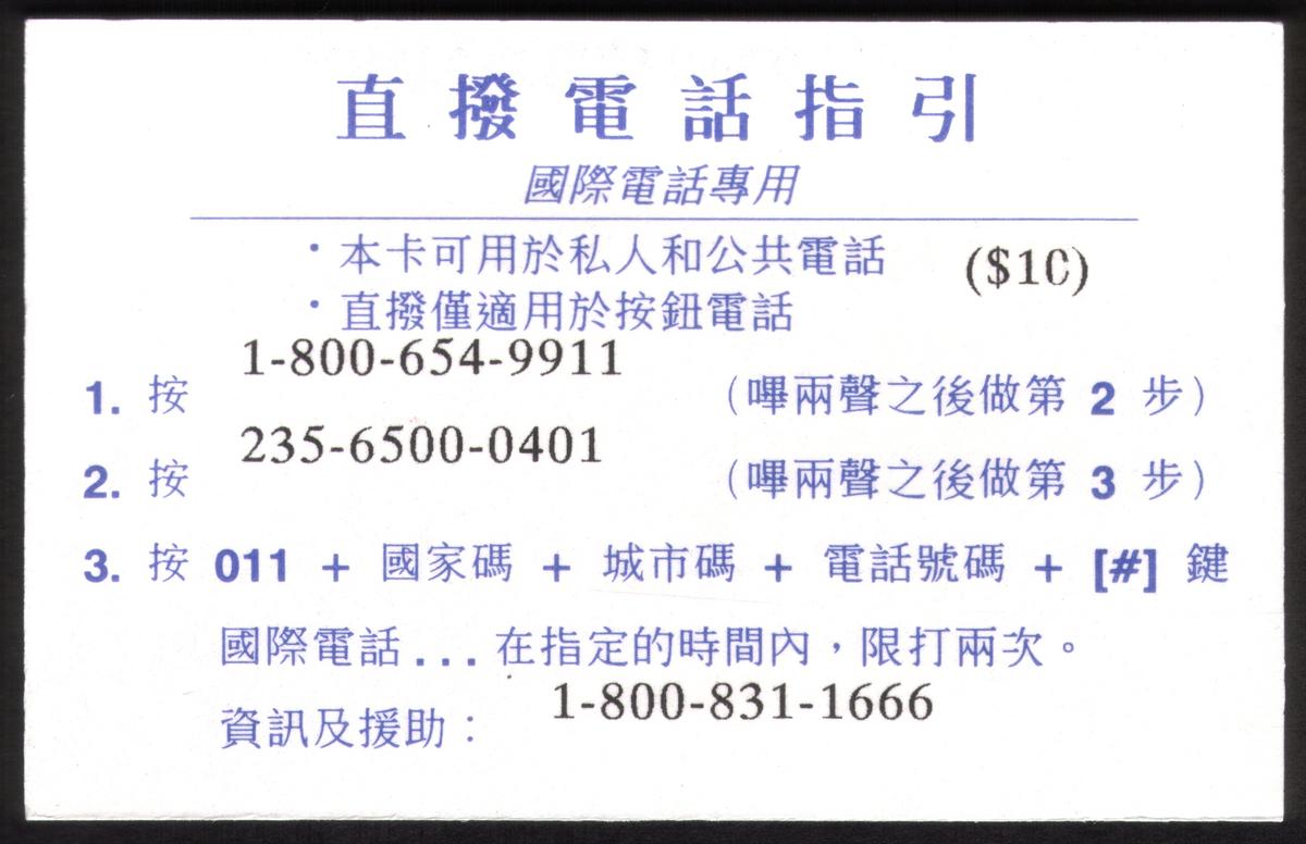 | $10. Hawaiian Flag (800 Access) Paper Card: Chinese Back |