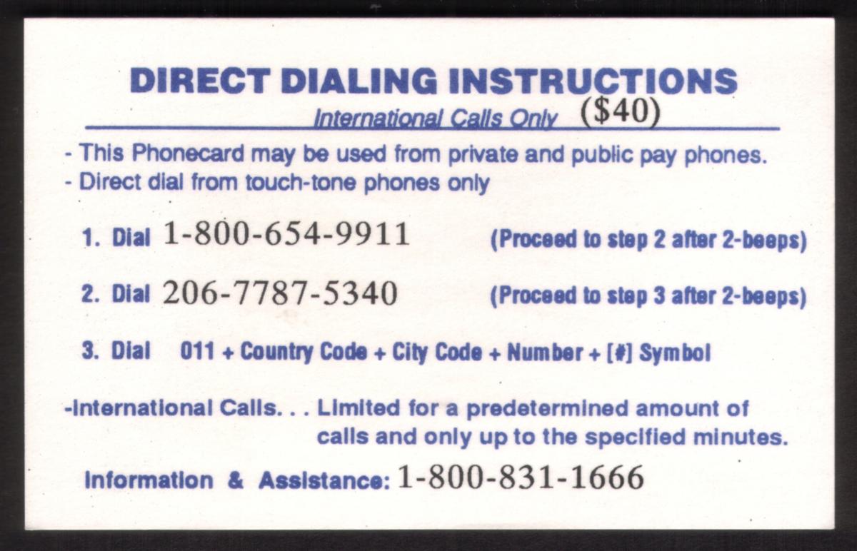 Since we have the world's largest inventory of USA phonecards for collectors, you will not necessarily receive the identical serial/batch/PIN number that we have scanned/pictured.