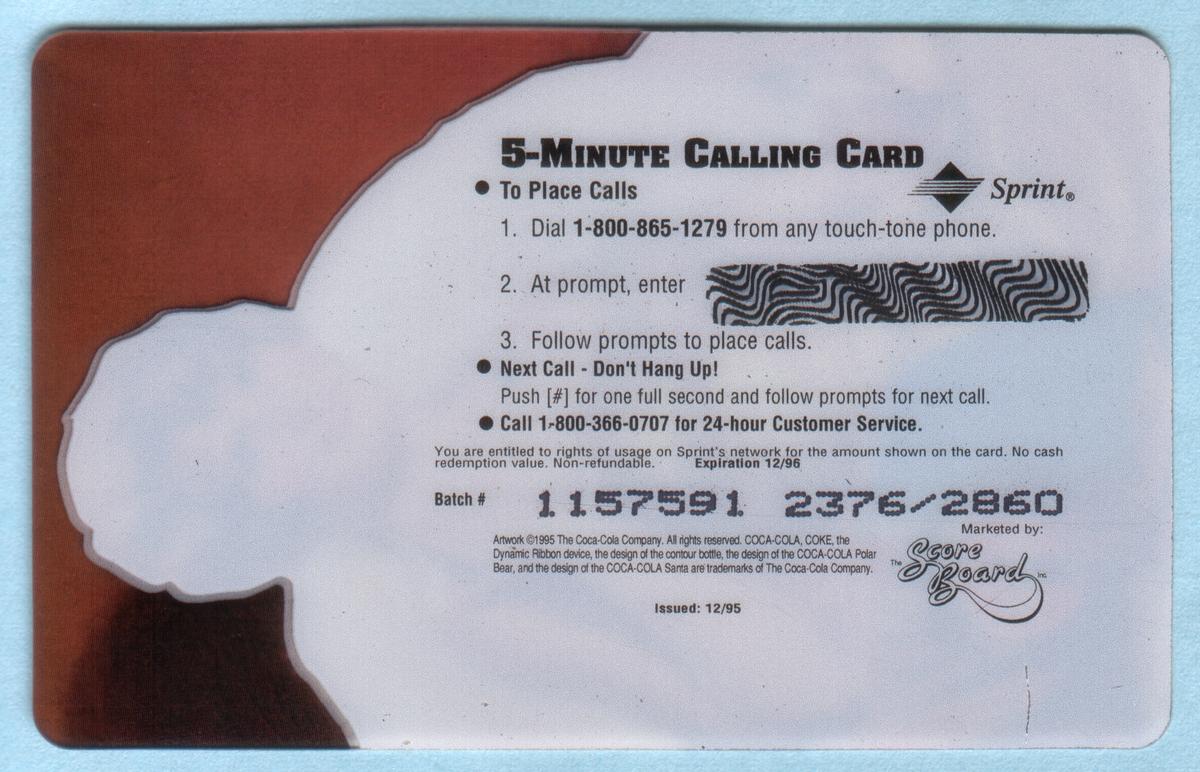 Since we have the world's largest inventory of USA phonecards for collectors, you will not necessarily receive the identical serial/batch/PIN number that we have scanned/pictured.