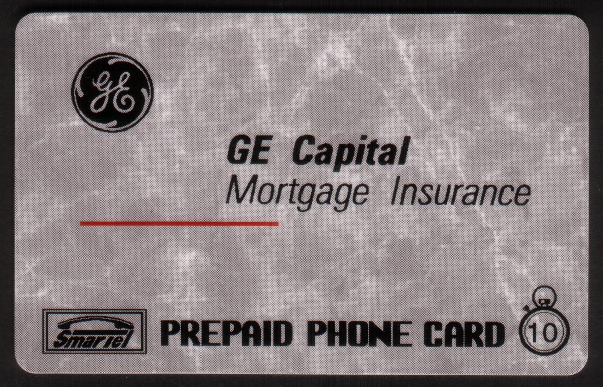 This collectible card features the GE Capital Mortgage Insurance logo prominently on the upper right side. The card is predominantly white with the GE Capital Mortgage Insurance name printed clearly in the center. The design is clean and corporate, reflecting its association with financial services related to home mortgages and lending institutions.