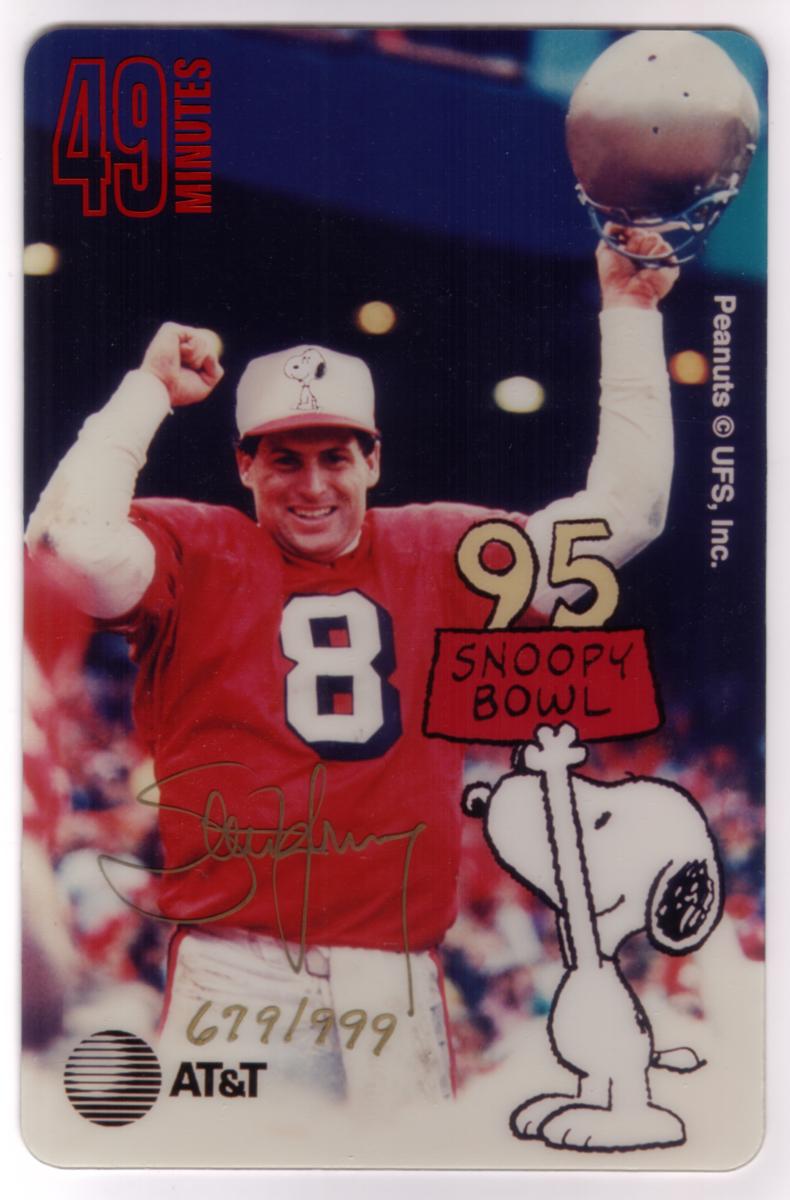Keywords: Sports: Football, Peanuts, art - cartoons, comics, animation, comic strips, Snoopy, Charles Schul football players, dogs, animals, snoopy, at&t, att, brilliant color cards, steve young signature, san francisco 49ers, original autograph, Winston Taylor (ATT)