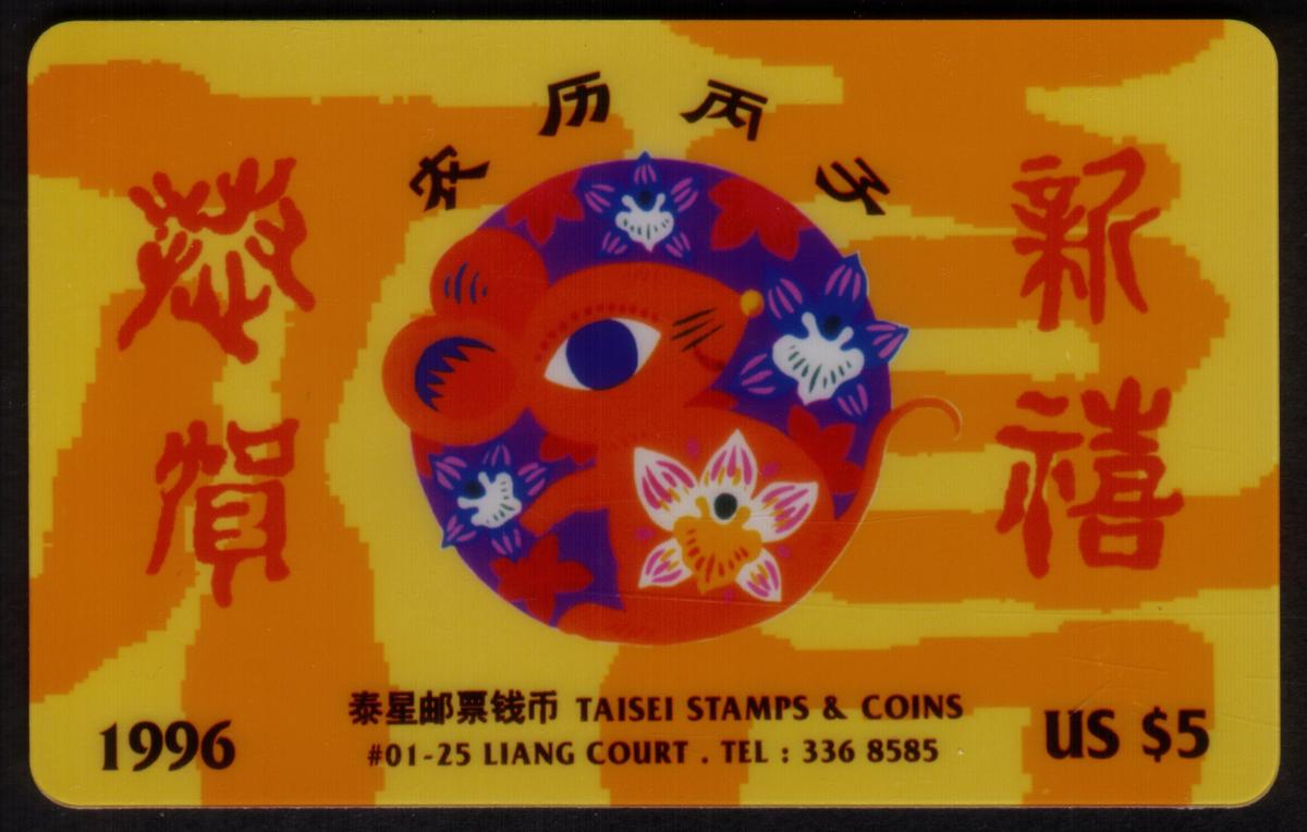 The imagery and text on the card reflect a strong emphasis on collecting, honoring both philately and coin collecting in connection to Chinese holidays. The card's presentation is clear and vivid, making it an attractive piece for collectors interested in zodiac-themed memorabilia and cultural artifacts from 1996.