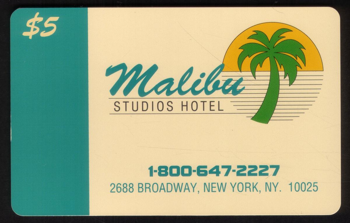 No other illustrations or images appear on the card besides the logo and text elements associated with Palm Tree and Malibu Studios Hotel. The colors are simple and focused on brand recognition rather than decorative imagery.