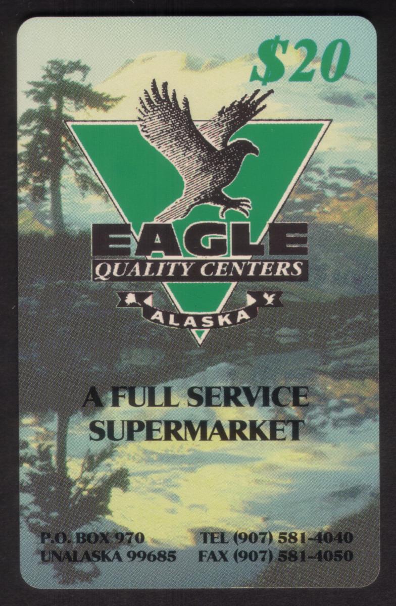 No additional names, logos, or graphics are present besides those mentioned. The card’s straightforward and vivid presentation reflects its promotional purpose linked to Eagle Quality Centers, making it a distinct collectible piece representing an Alaskan supermarket phone service.