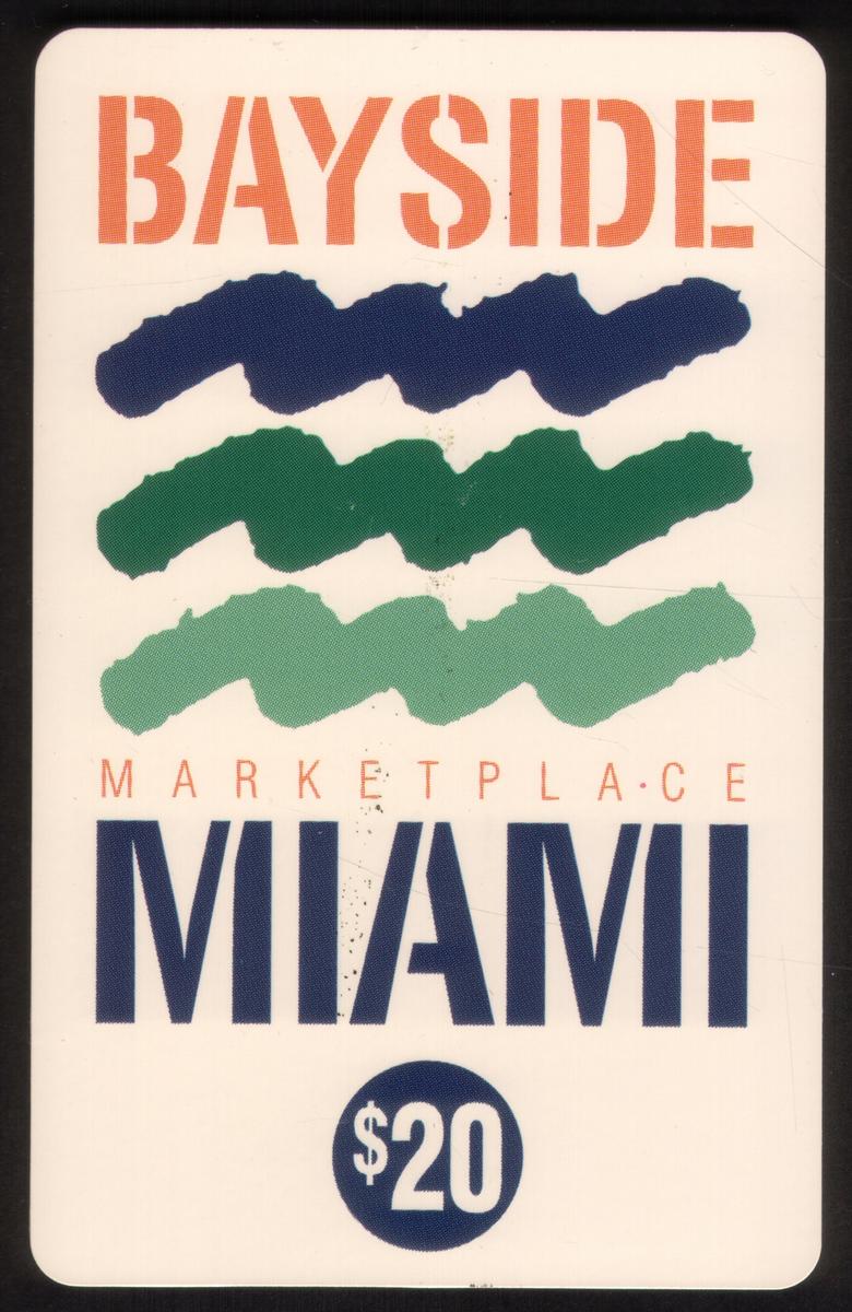 The visual style of the card emphasizes the vibrant identity of Bayside Marketplace, a well-known shopping and entertainment complex in Miami. The colors and layout draw attention to the location’s name, making it clear that this card celebrates the popular destination.