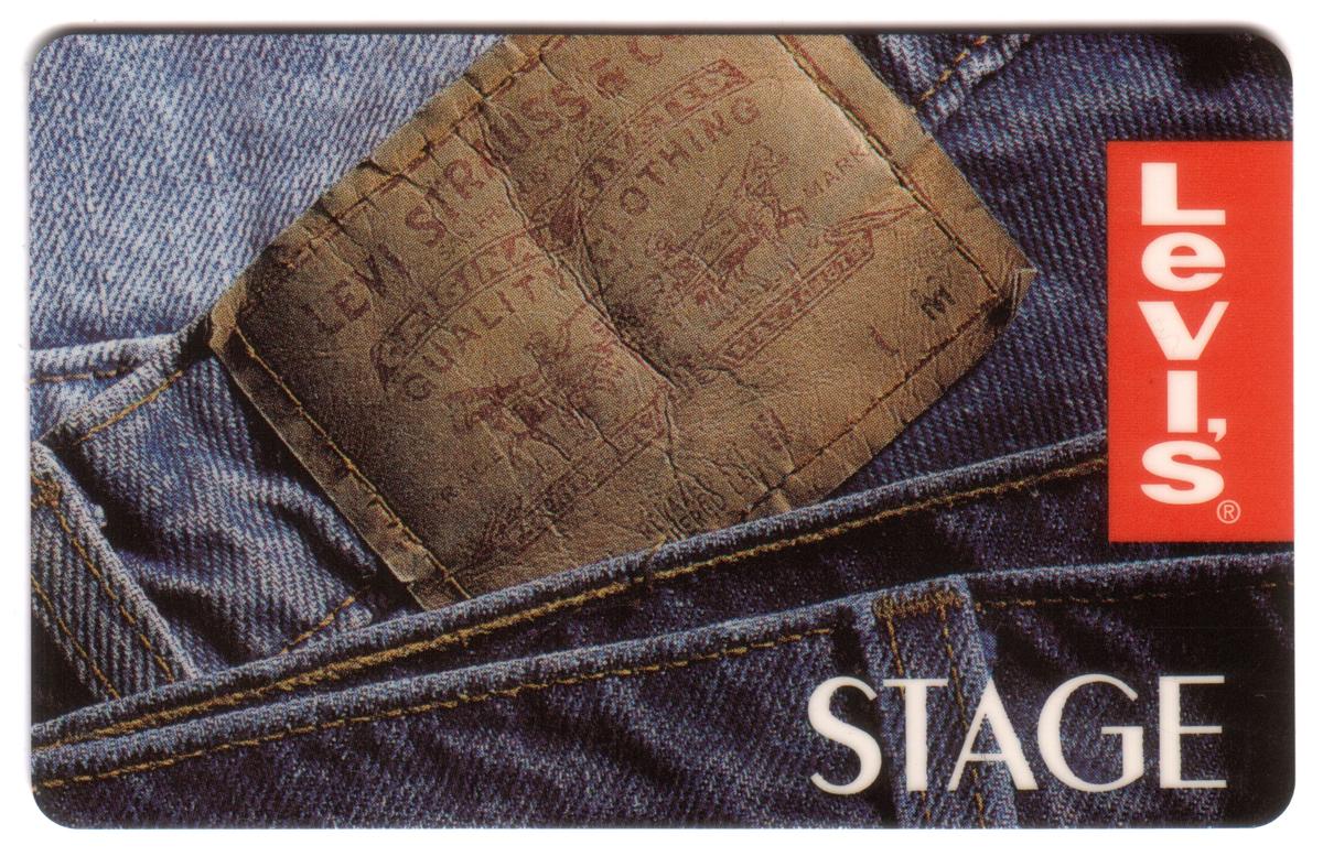 This collectible phone card prominently features the corporate logos and trademarks of Levi Strauss & Co., including the Levi's brand name, emphasizing their iconic blue jeans. The foreground includes the text "15m Levi Jeans (Stage Department Store)" along with "Creative Communication," indicating a promotional or advertising theme tied to Levi's denim products. The card's design highlights the famous Levi's blue jeans brand through stylized text and branding elements placed clearly on the front.
