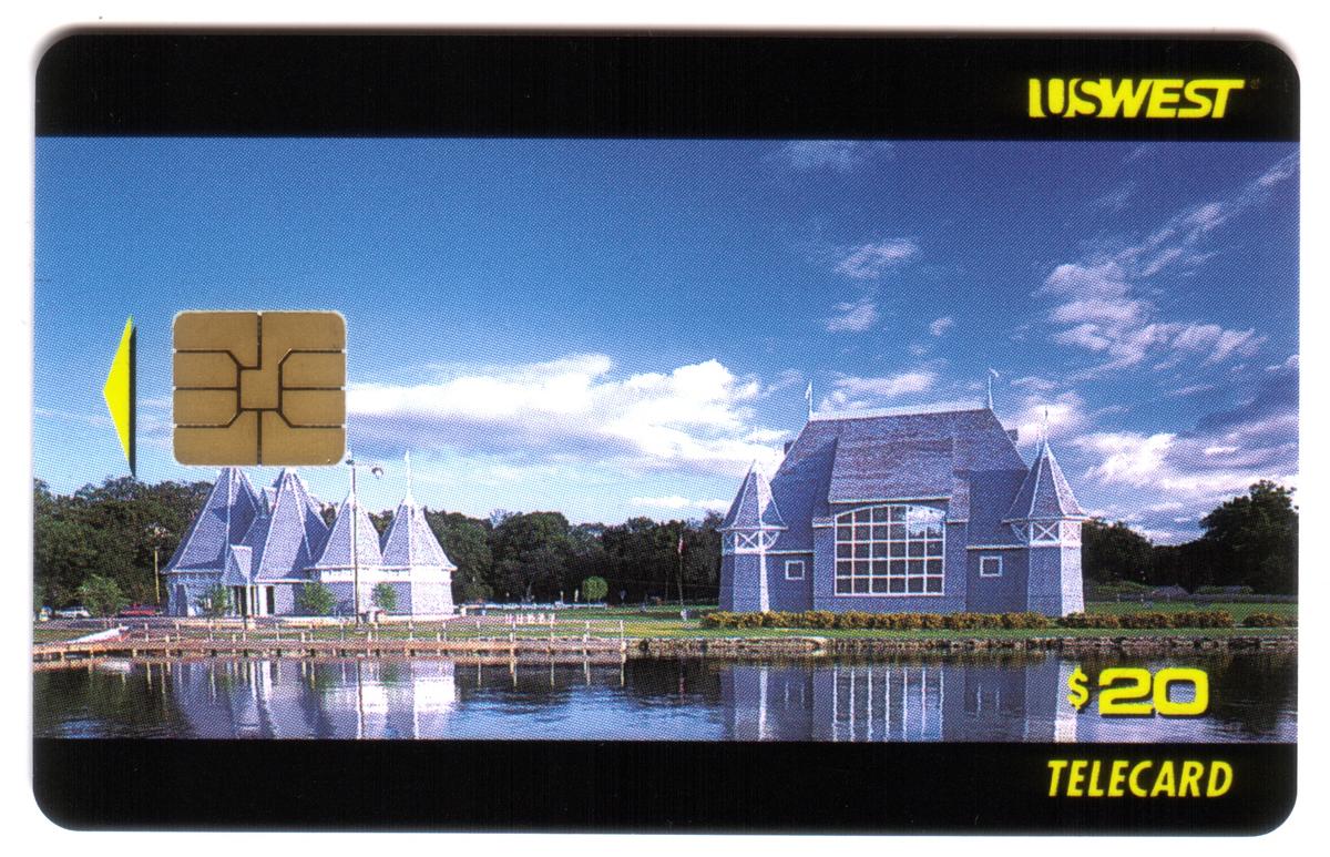 These three collectible phone cards are part of the Minneapolis Landmark Series, issued by US West Communications. Each card features a notable landmark from Minneapolis depicted in a high-quality photographic image. The cards have a black border and include a gold chip on the left side, with the denomination and the word "TELECARD" in yellow text on the bottom right corner. The US West logo appears on the upper right corner of each card.
