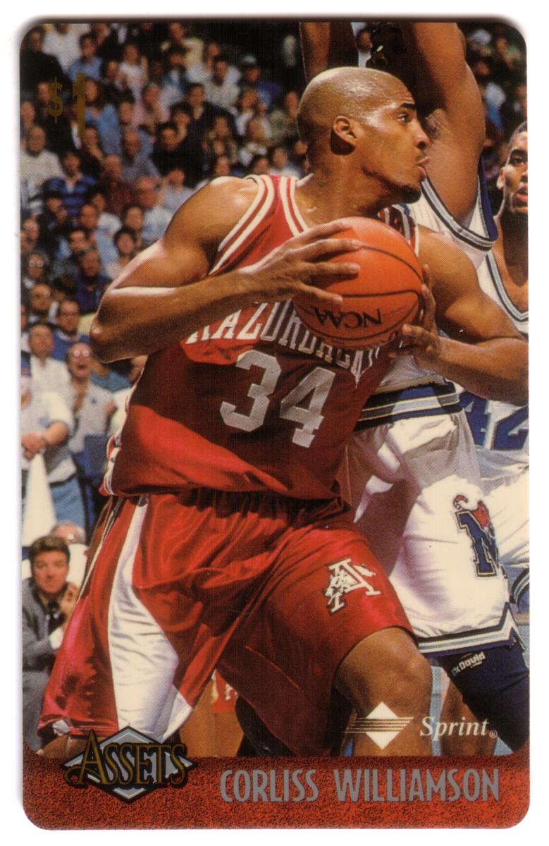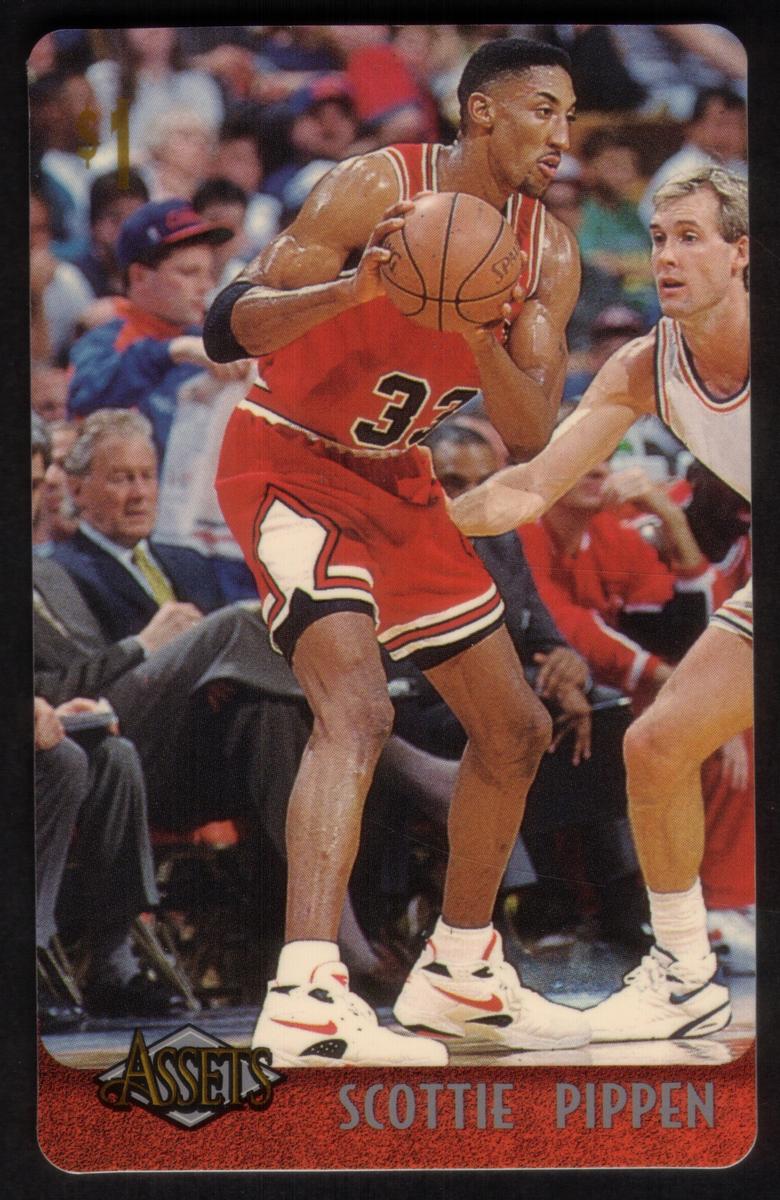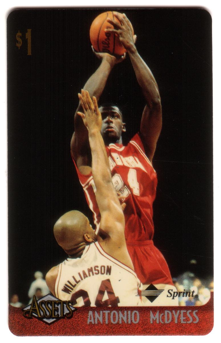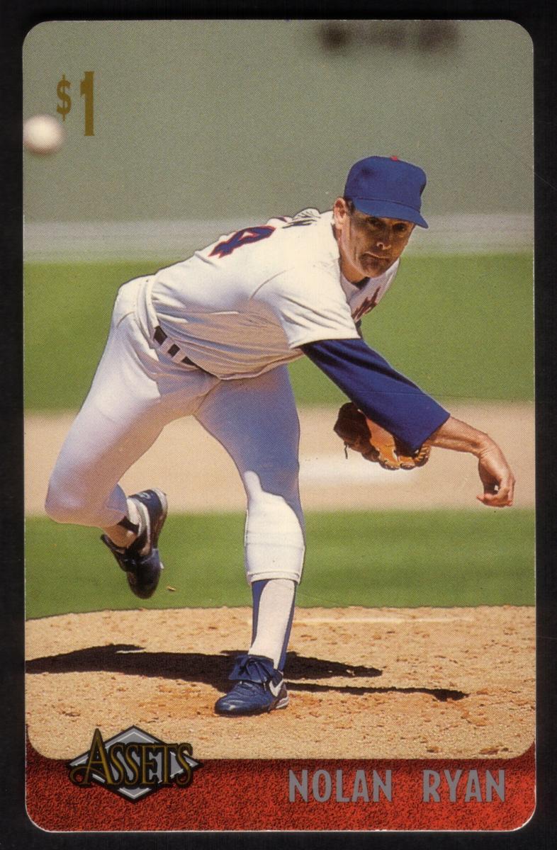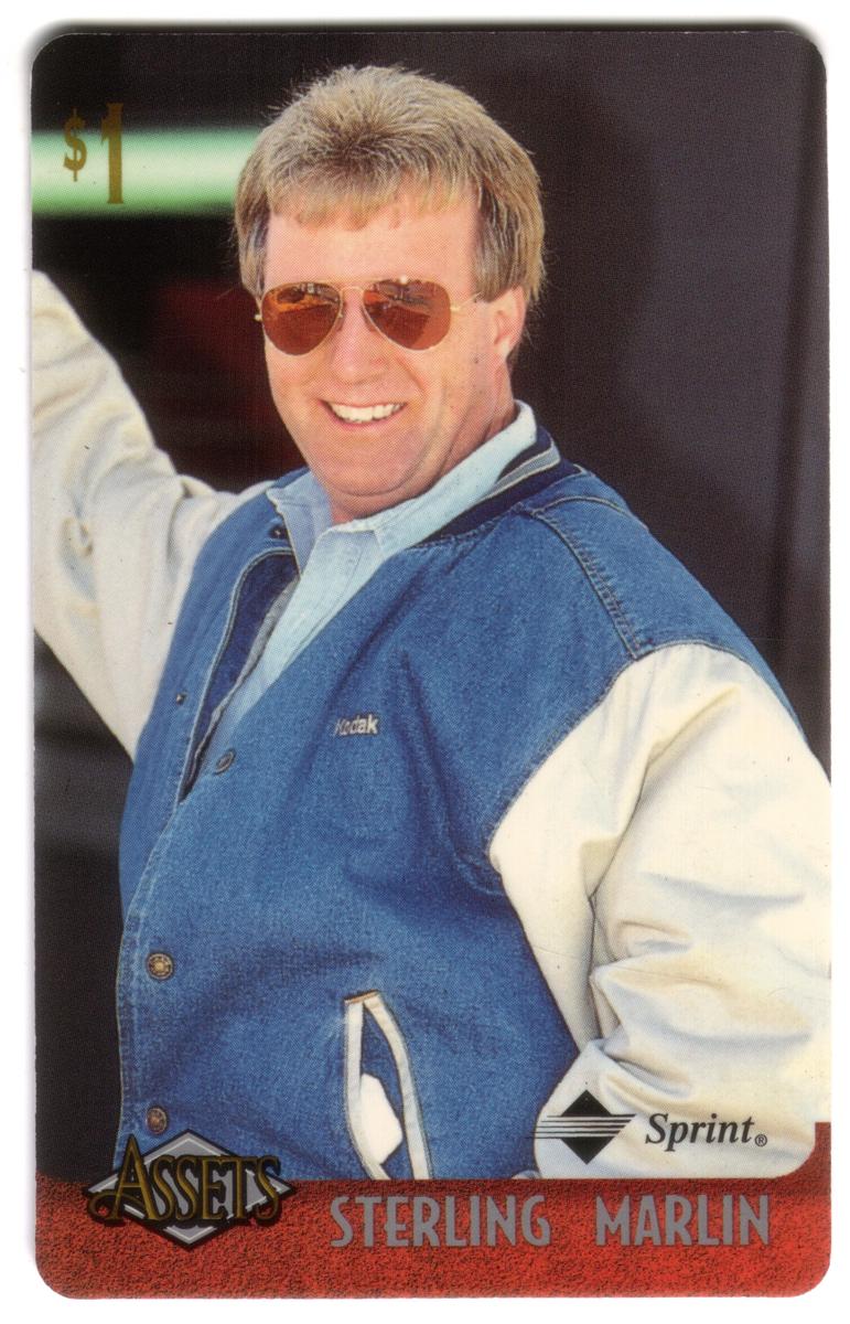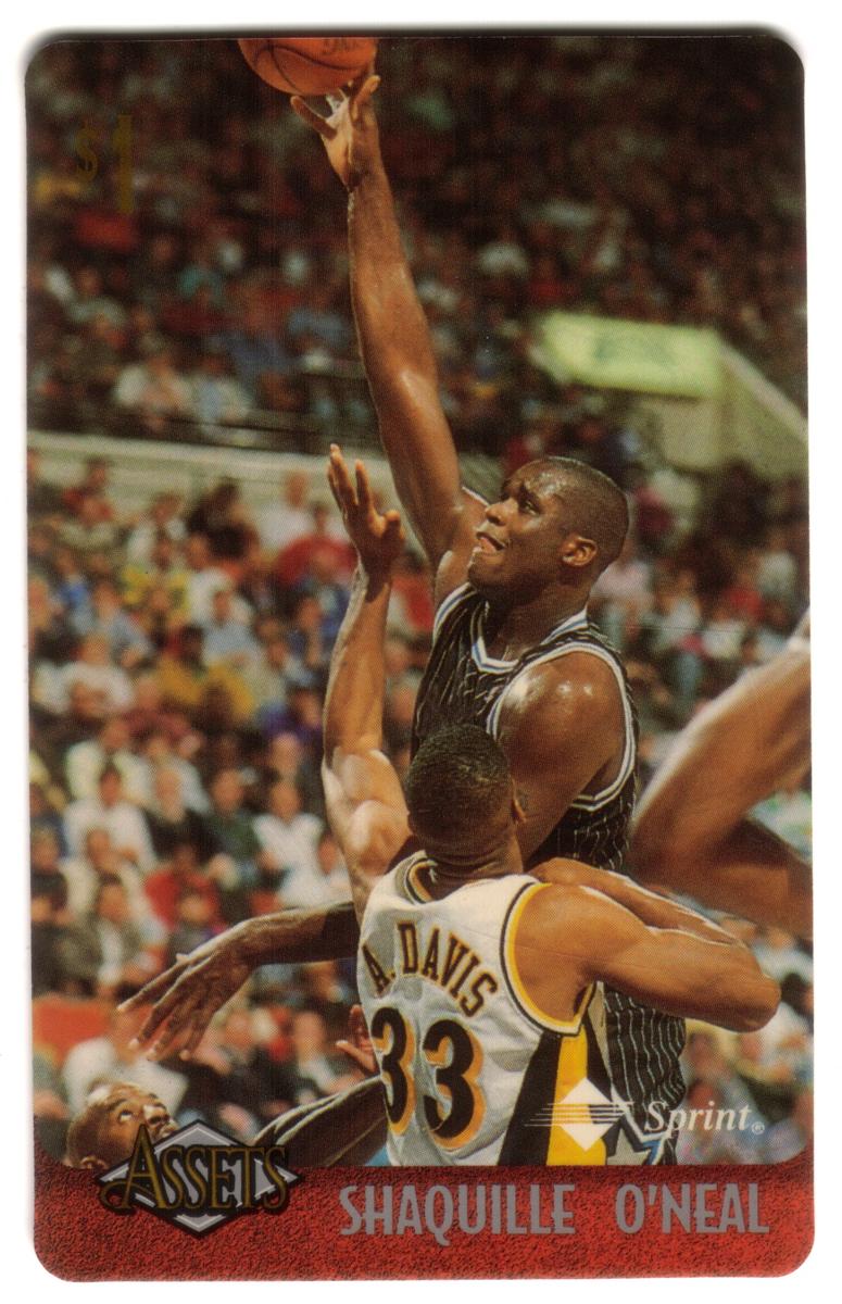 This collection features collectible phone cards from the "Assets" series issued by Sprint. Each card displays a vibrant photographic image of a prominent athlete from various sports including football, basketball, baseball, racing, and hockey. The front of each card shows the close-up action or portrait of the athlete, along with a red band at the bottom that contains the athlete’s name in bold capital letters. The "Assets" logo and the Sprint logo appear prominently on the lower left and right corners respectively. Each card has a denomination of $1, printed near the top left corner in gold.