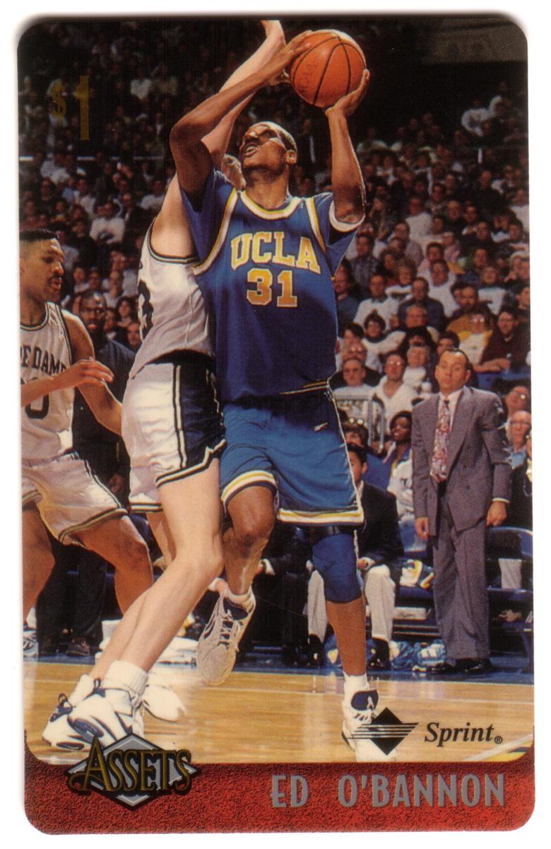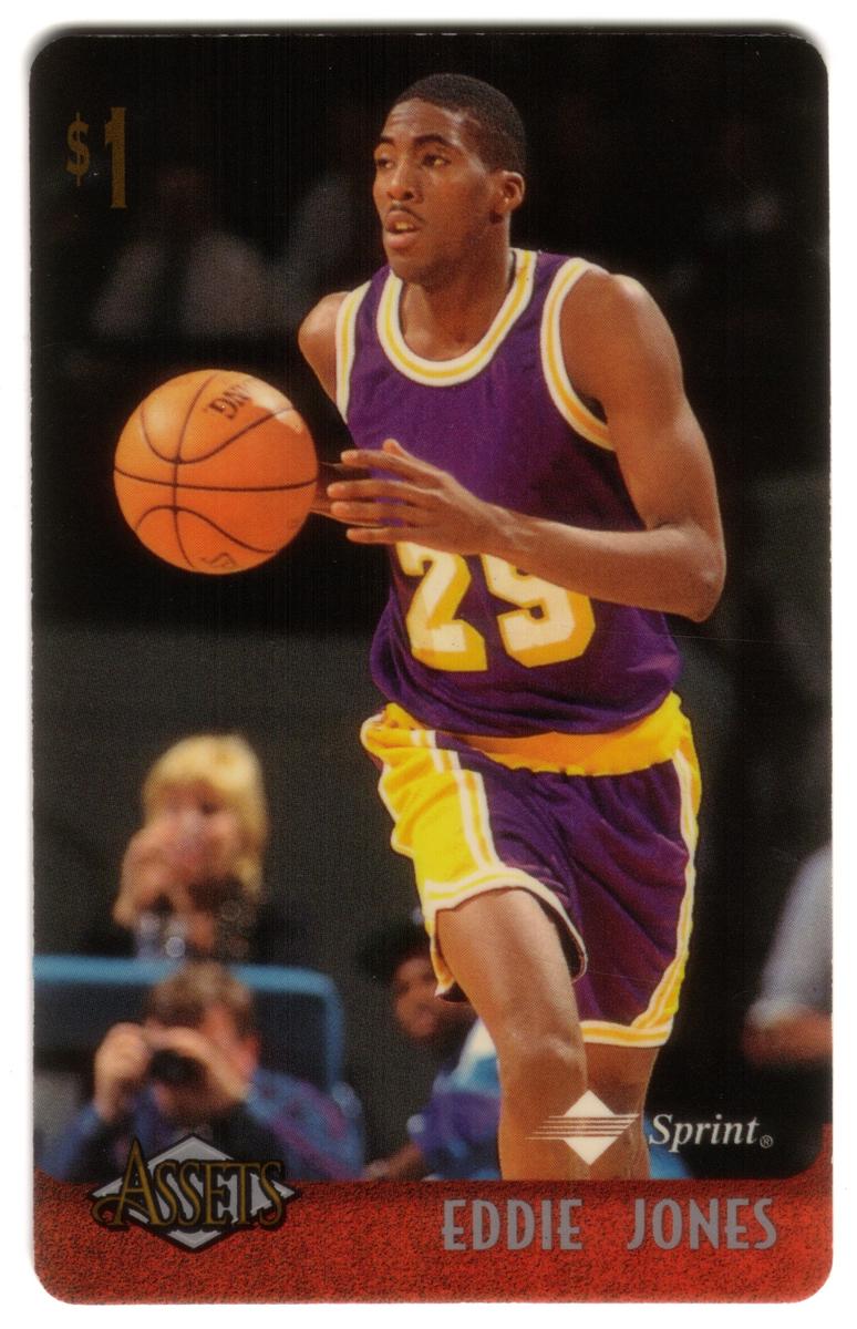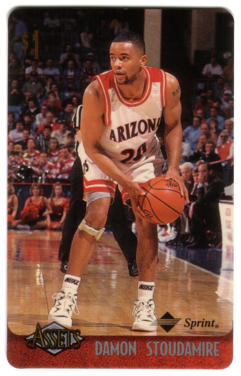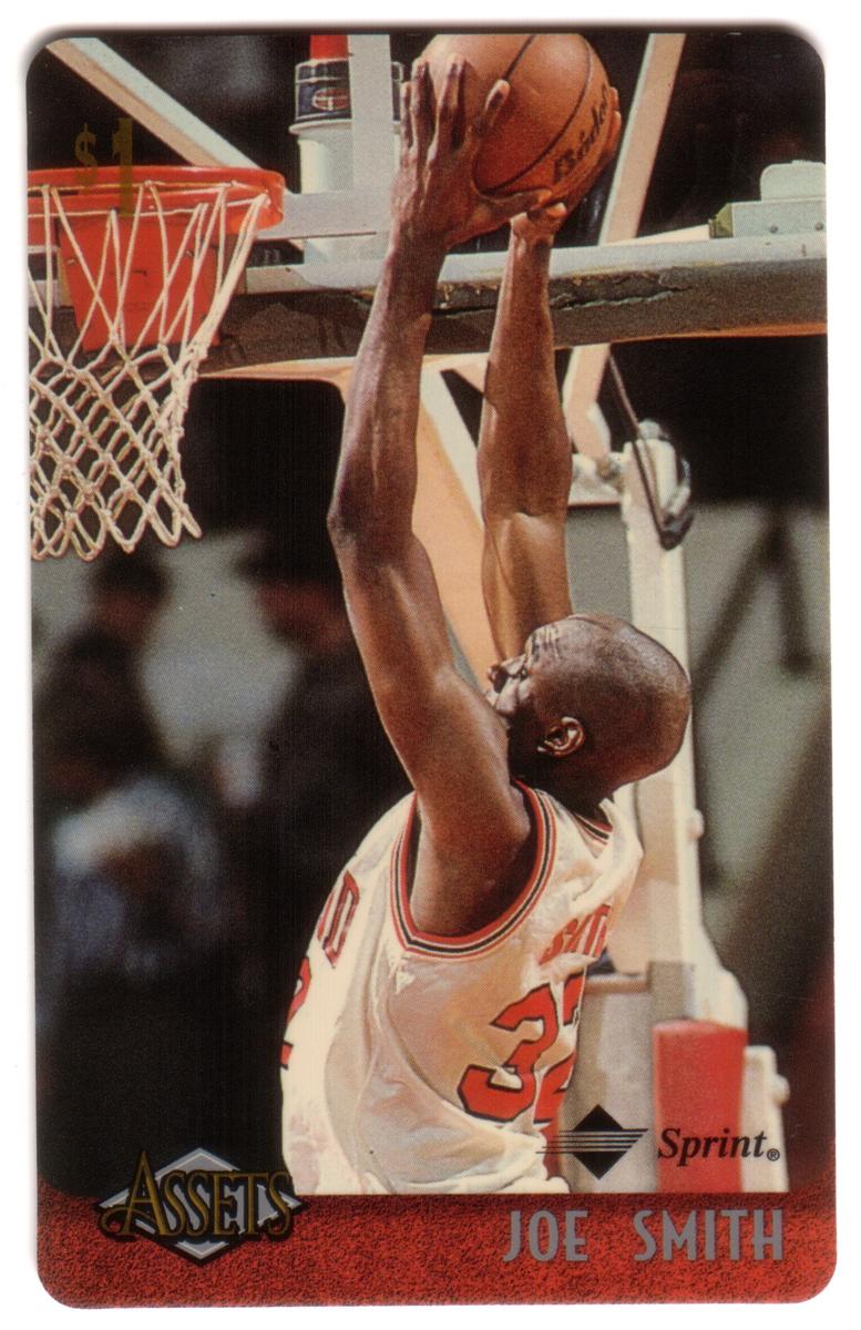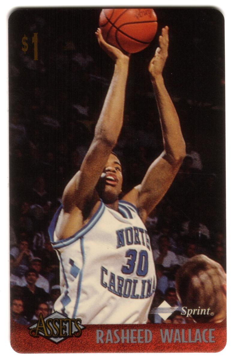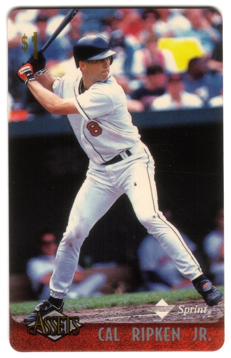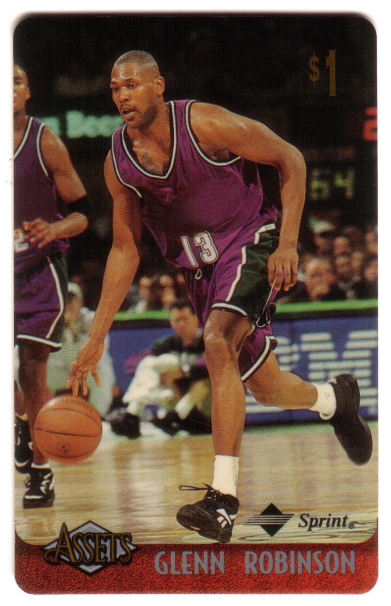 This collection features collectible phone cards from the "Assets" series issued by Sprint. Each card displays a vibrant photographic image of a prominent athlete from various sports including football, basketball, baseball, racing, and hockey. The front of each card shows the close-up action or portrait of the athlete, along with a red band at the bottom that contains the athlete’s name in bold capital letters. The "Assets" logo and the Sprint logo appear prominently on the lower left and right corners respectively. Each card has a denomination of $1, printed near the top left corner in gold.