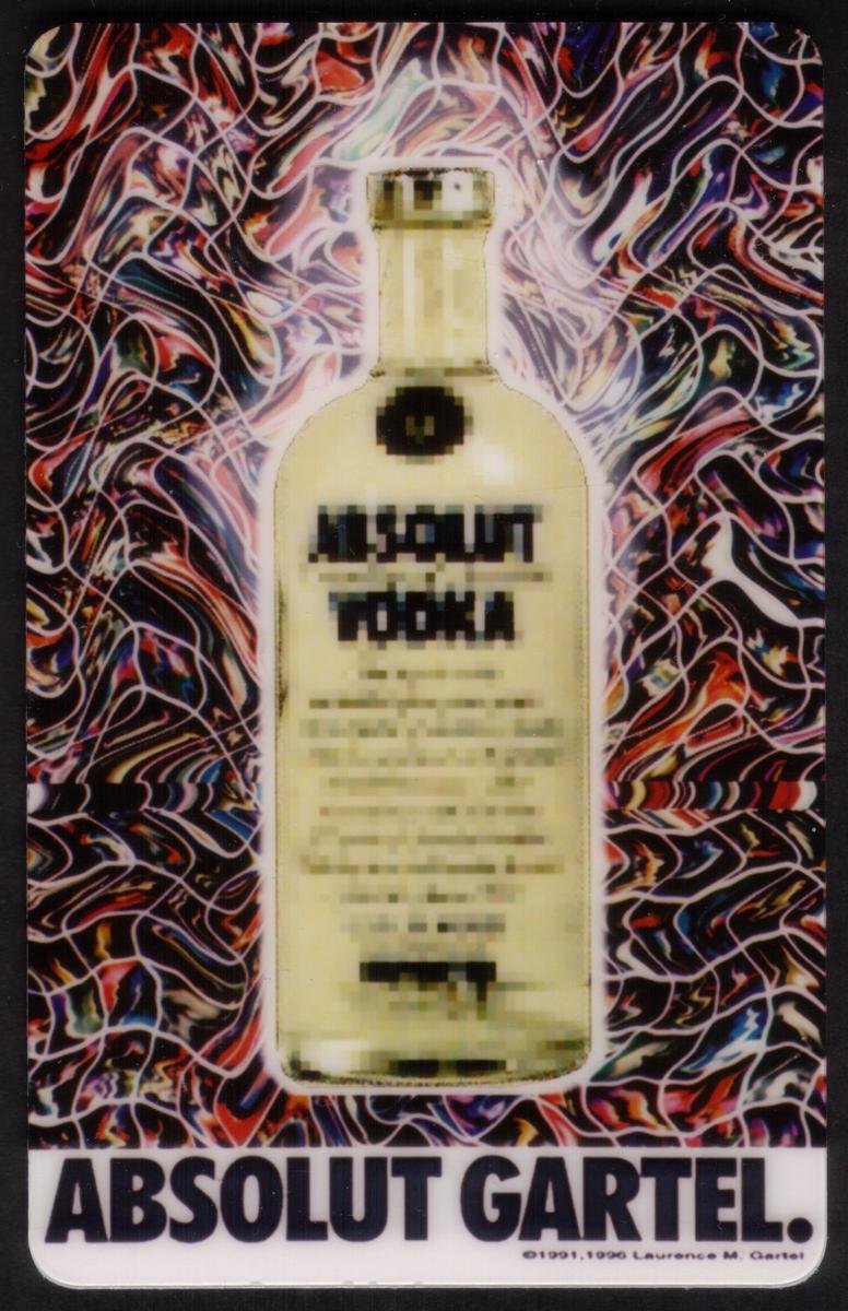 Limited edition Absolut Gartel phone card featuring vibrant digital art, artist signature, serial number 169/200, and 1990s cultural and technological significance. |