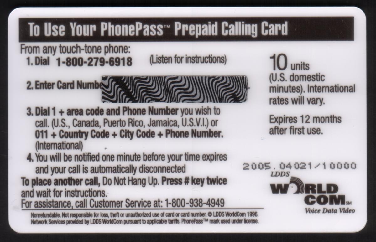 Since we have the world's largest inventory of USA phonecards for collectors, you will not necessarily receive the identical serial/batch/PIN number that we have scanned/pictured.