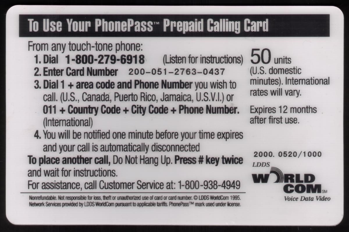 Since we have the world's largest inventory of USA phonecards for collectors, you will not necessarily receive the identical serial/batch/PIN number that we have scanned/pictured.