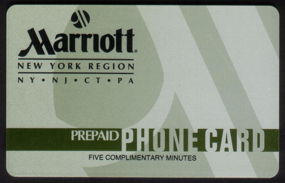 This collectible promotional business card is associated with Marriott Hotels and specifically references the New York Region, covering New York, New Jersey, Connecticut, and Pennsylvania. The card features a design related to Marriott Hotels Communications Design. The front of the card prominently displays the Marriott logo in red and black, accompanied by text indicating "5m," which denotes the card’s value or unit.