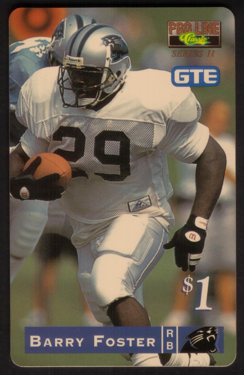 This collectible card features Barry Foster, a running back number 29, associated with the Carolina Panthers in the National Football League (NFL). The card is part of a series linked to football and NFL players. The design prominently displays the player’s name, team, and position, highlighting Barry Foster’s role as a running back.