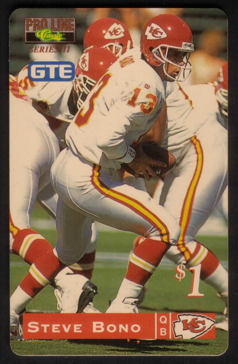 This card is part of a collectible series centered on NFL football players, specifically quarterbacks. Steve Bono’s association with the Kansas City Chiefs is clearly stated, confirming the card’s connection to both the player and the team in professional football.